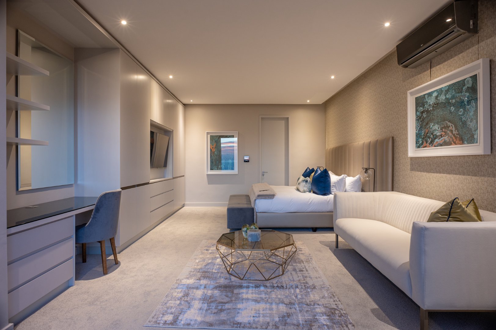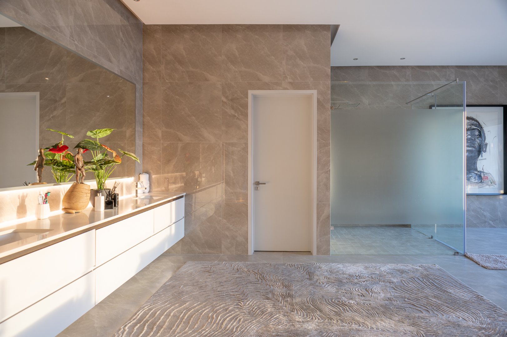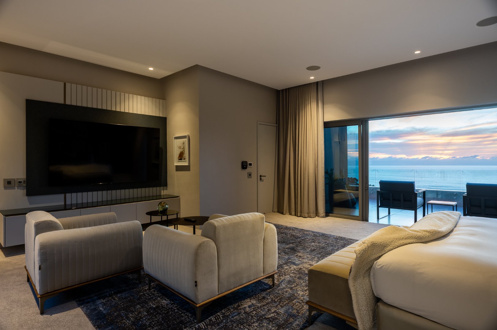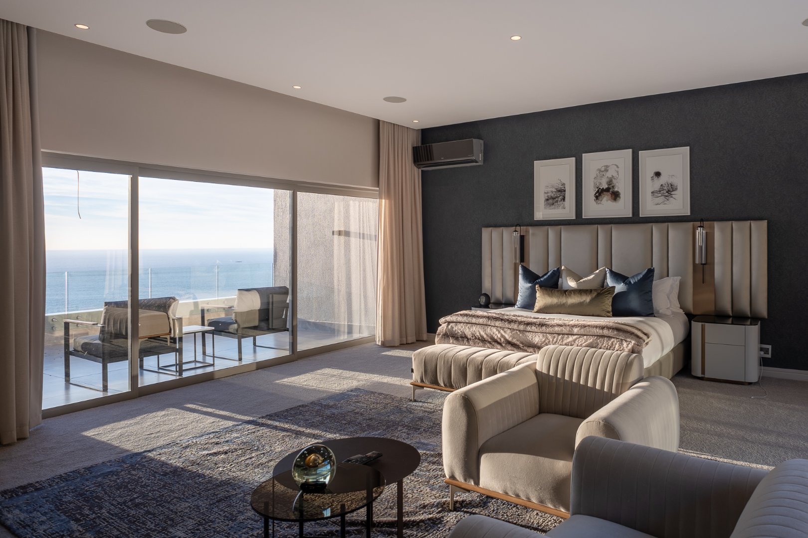The master suite comprises the entire top floor of this villa offering 3 separate balconies, a huge walk in closet, a private office, 2 x TV lounges and large ensuite bathroom with ocean views.