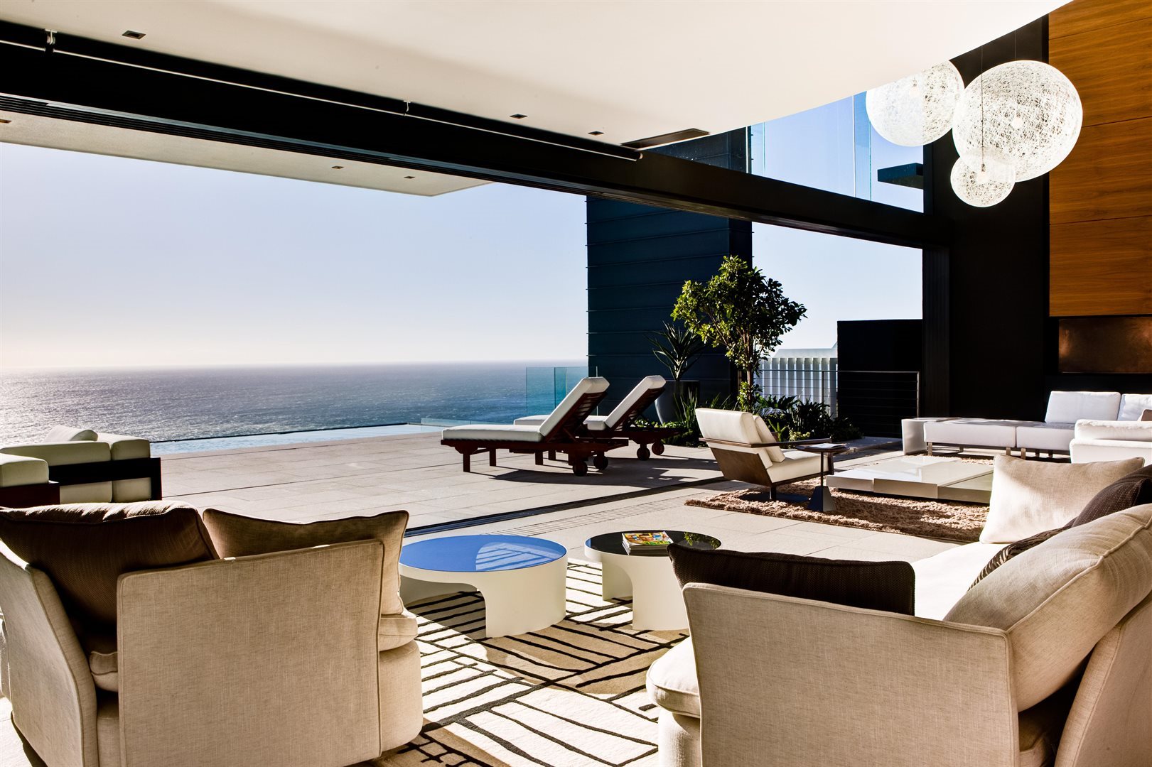 Boasting lavish interiors throughout the home along with a double volume entertainment area that merges effortlessly with the mountain – garden, which leads on to a large terrace with a rim flow pool overlooking Clifton.