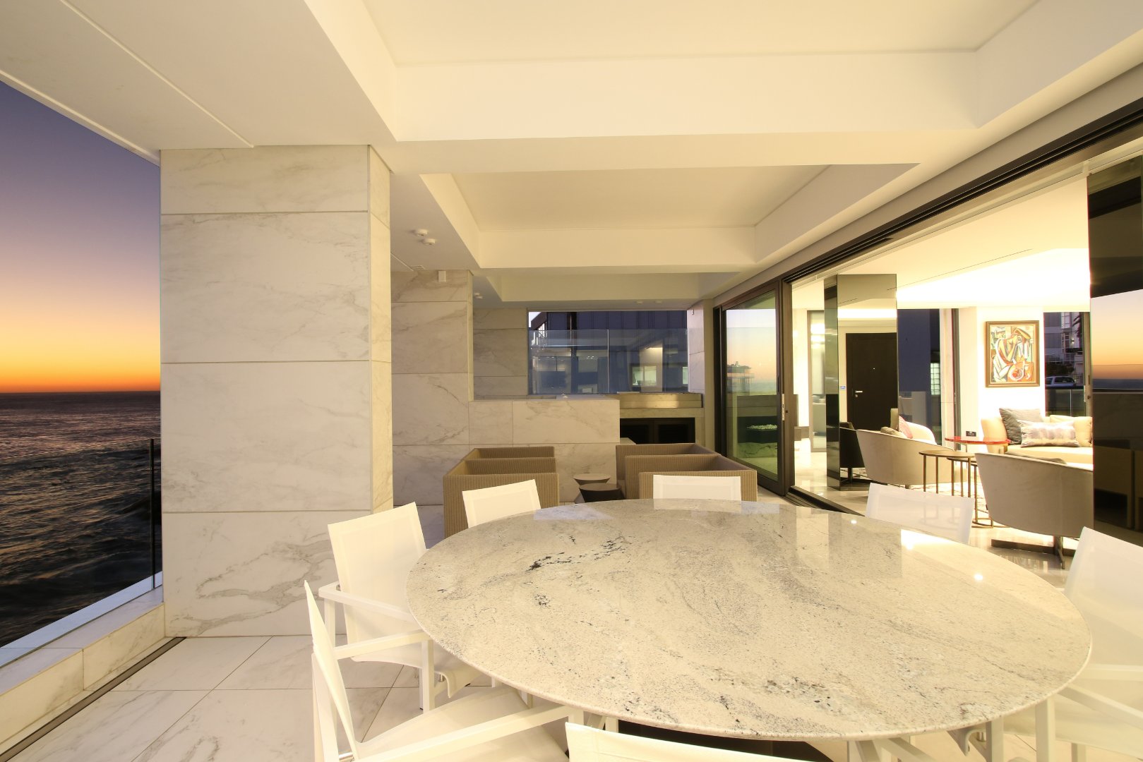 The Aurum is an ultra luxurious apartment building, built on the edge of Bantry Bay. The very name of the building, is set in a real gold tile inlay. An exclusively designed perfume, accompanied by dulcet tones of classical music, greets guests upon arrival in the lobby. Apartment 701, a stone’s throw away from idyllic Bantry Bay shoreline, exudes luxury. Listen to the sound of the waves breaking over the rocks below as you lie in the bathtub overlooking the Atlantic Ocean. The marble and leather ensemble in the lounge and dining room exudes elegance and the minimalist design style is irresistibly alluring. With 3 double en-suite bedrooms, accommodating 6 guests, this apartment is perfect for a family or group of friends.