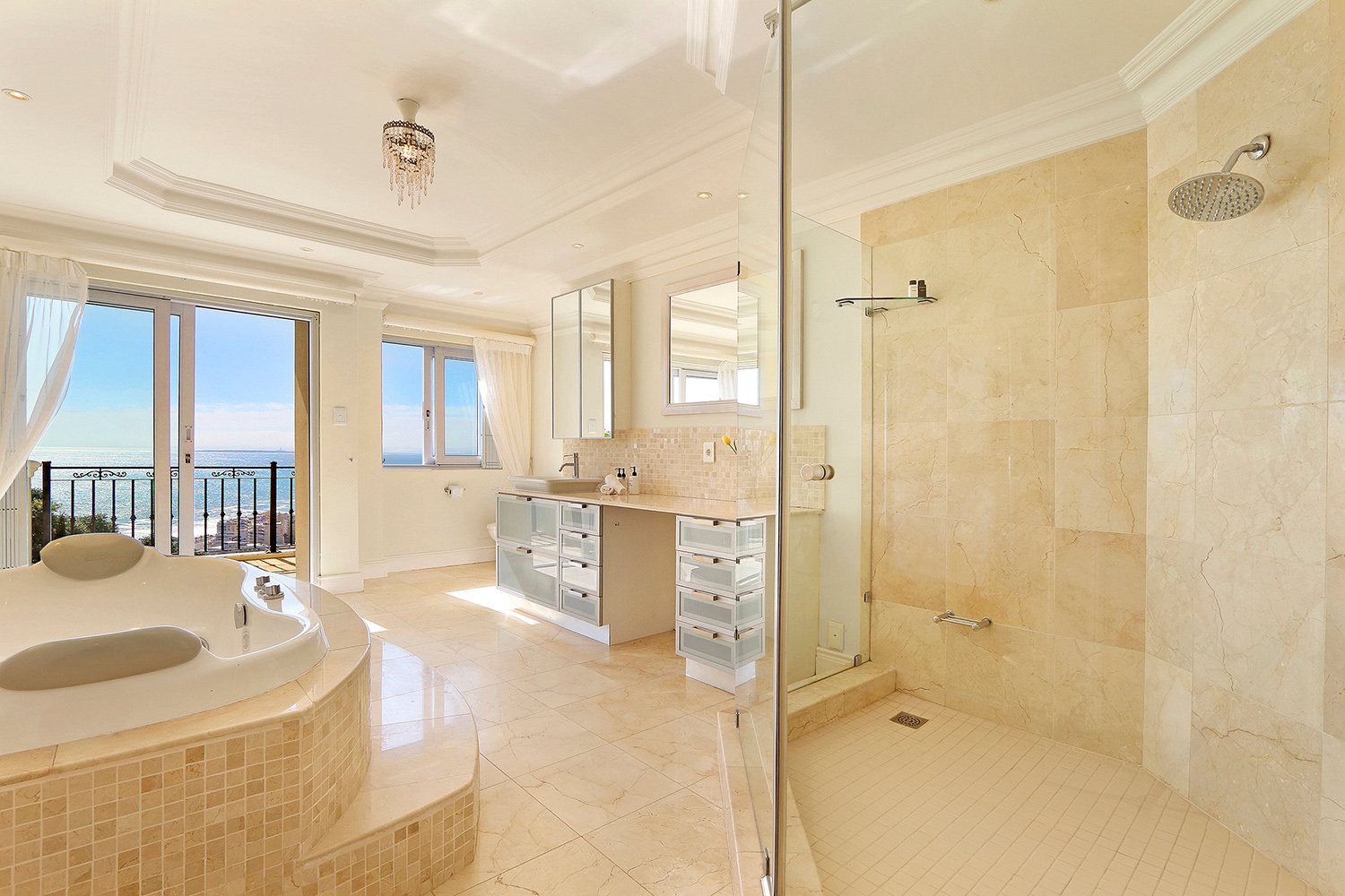 The Main House consists of 5 large en-suite bedrooms with balconies and all have fabulous ocean views. The Master Bedroom has two en-suite bathrooms.