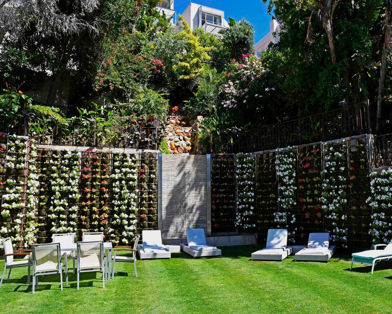 The totally unique and breathtaking garden with a tiered waterfall at the back of the Villa allows for a haven of peace and quiet, together with alfresco dining on a beautiful summer’s evening.
