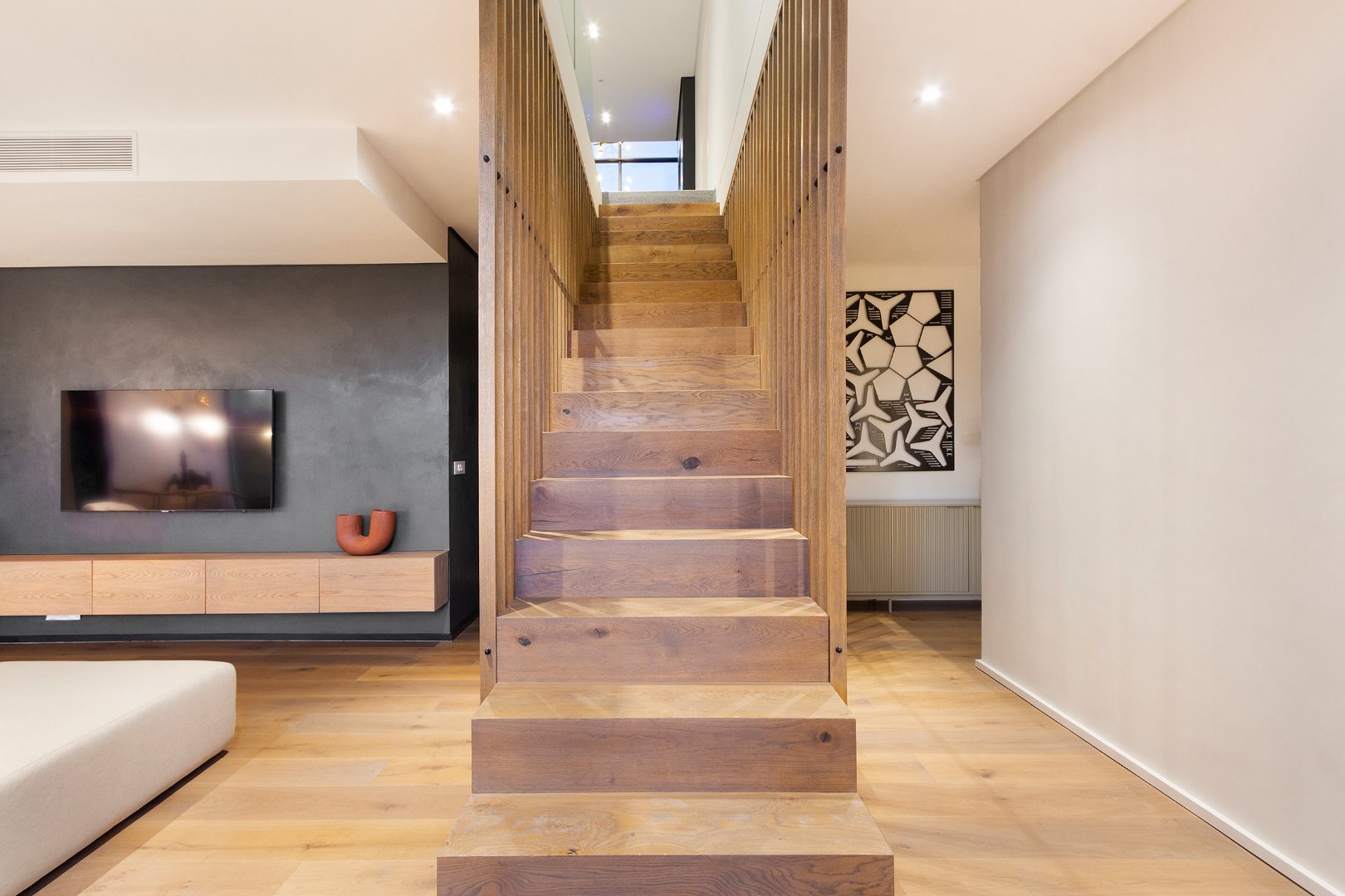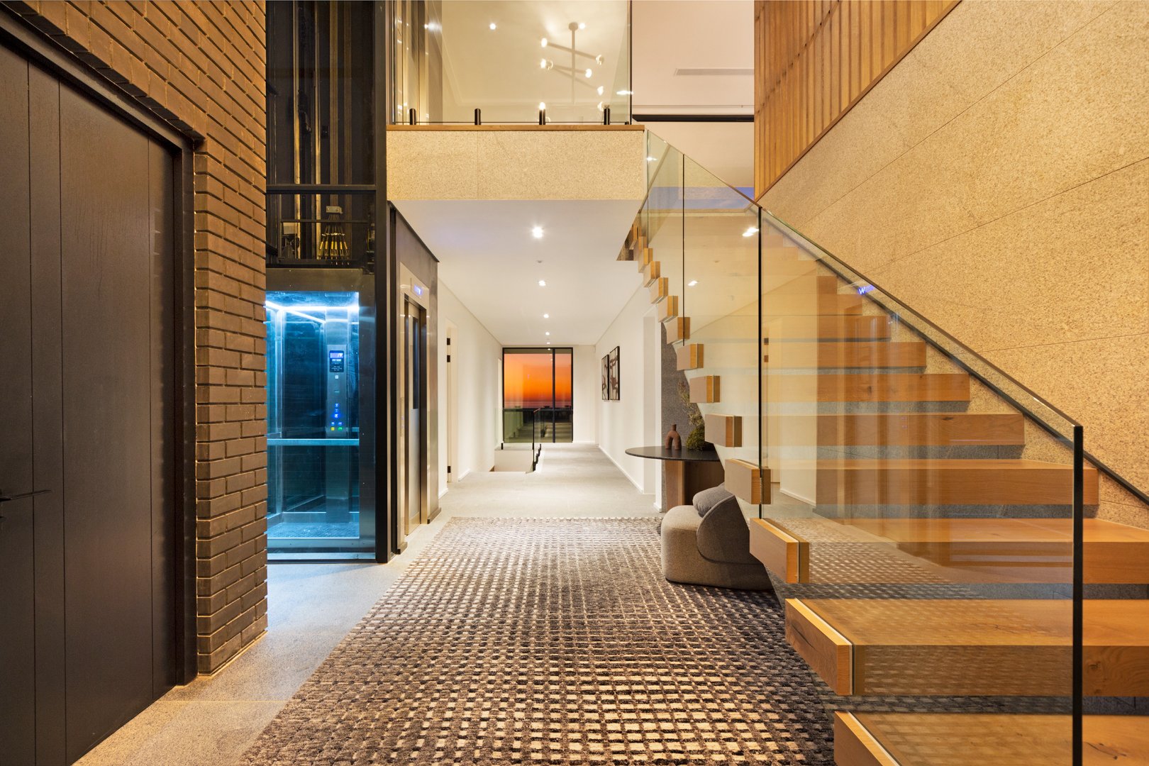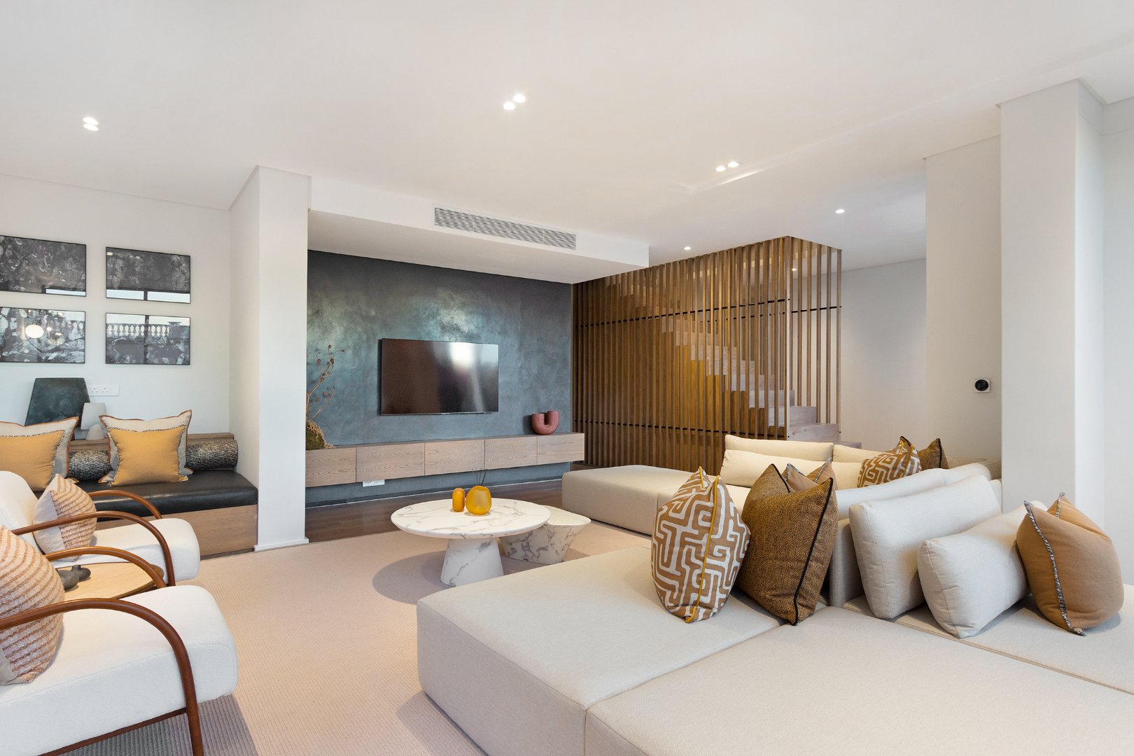 The villa features a lift, multiple lounges, a rooftop lookout station, and a swimming pool with sun loungers. Inside, each bedroom boasts king extra-length beds, electronic black-out blinds, TVs, and ensuite bathrooms, ensuring maximum comfort and privacy for all guests.