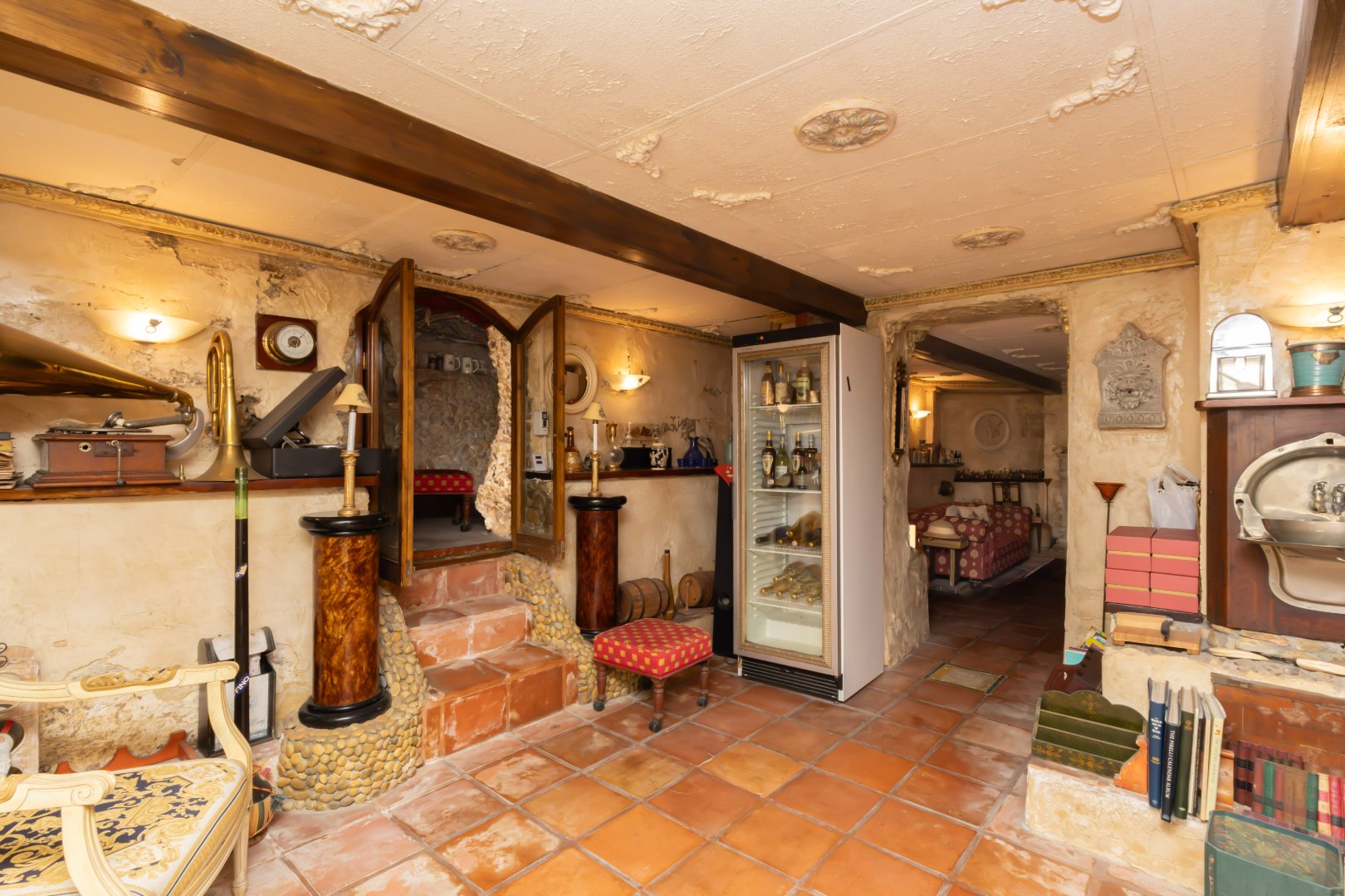 Adding to the sense of privacy and retreat, the property boasts a lush, secluded garden with a swimming pool, offering a tranquil oasis rarely found in this location. A dedicated games room provides additional recreational space, while the impressive wine cellar and tasting room elevate the home into a truly distinctive offering for collectors and entertainers alike.