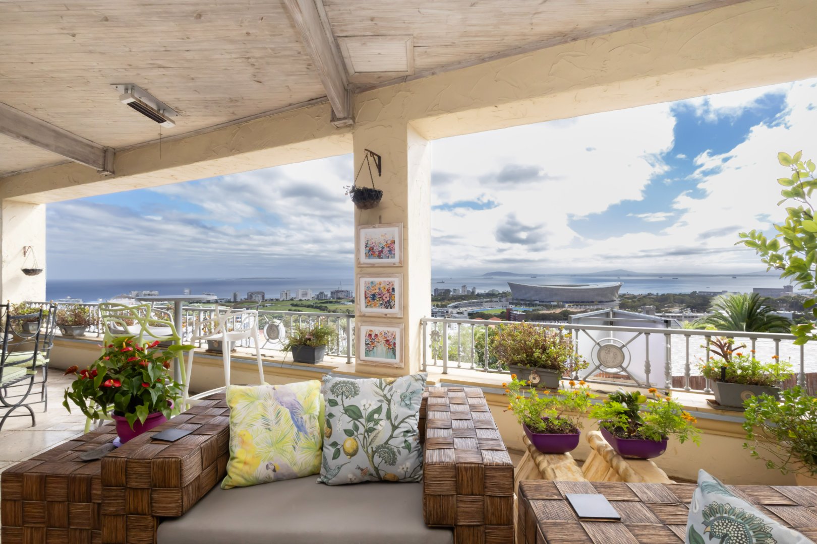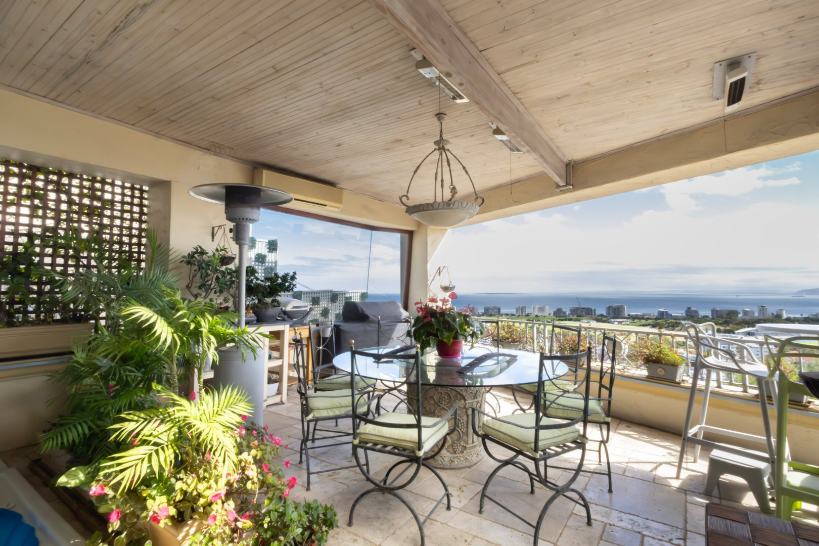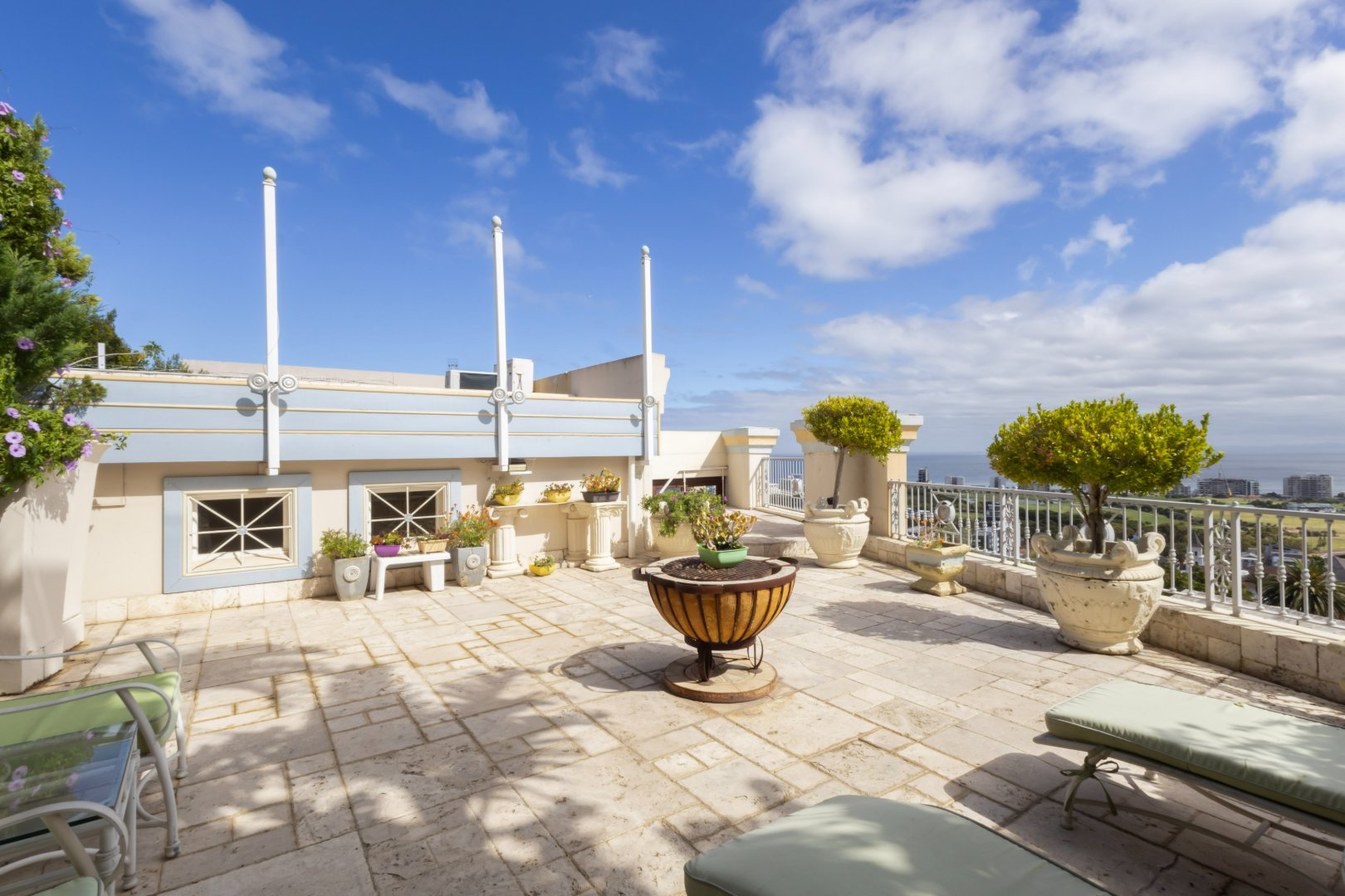The residence enjoys sweeping, uninterrupted views across the Atlantic Seaboard, creating a dramatic backdrop to daily living. Designed for both comfort and entertaining, the home comprises three generously sized bedrooms and three well-appointed bathrooms, complemented by open-plan living and dining areas that flow seamlessly outdoors.