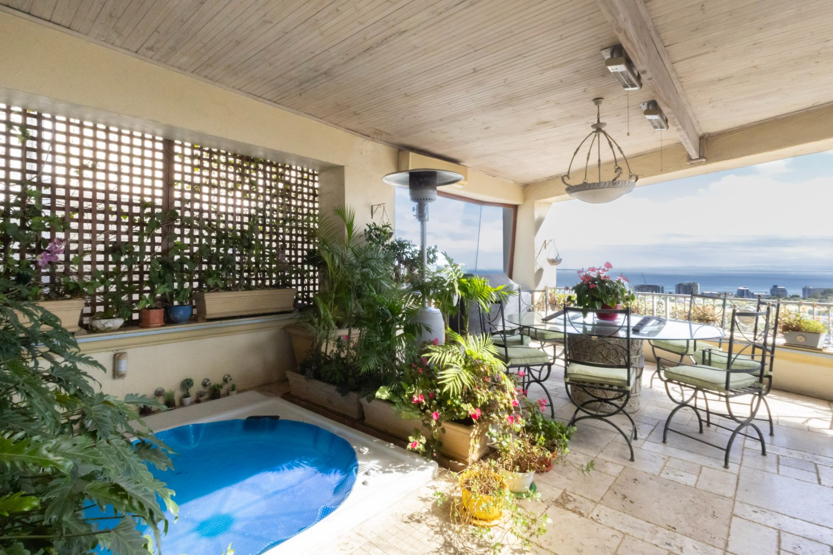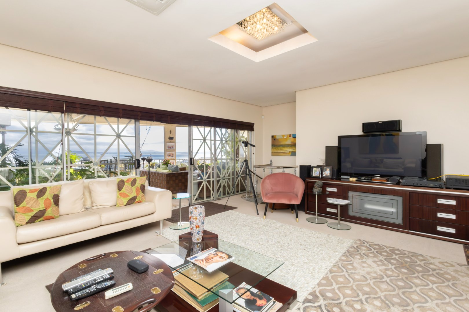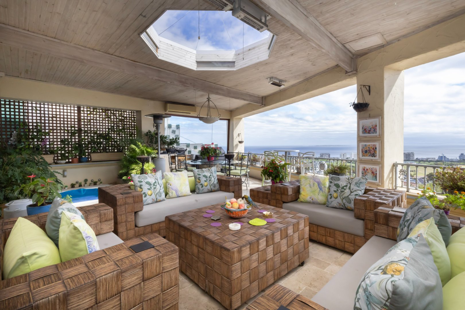The residence enjoys sweeping, uninterrupted views across the Atlantic Seaboard, creating a dramatic backdrop to daily living. Designed for both comfort and entertaining, the home comprises three generously sized bedrooms and three well-appointed bathrooms, complemented by open-plan living and dining areas that flow seamlessly outdoors.