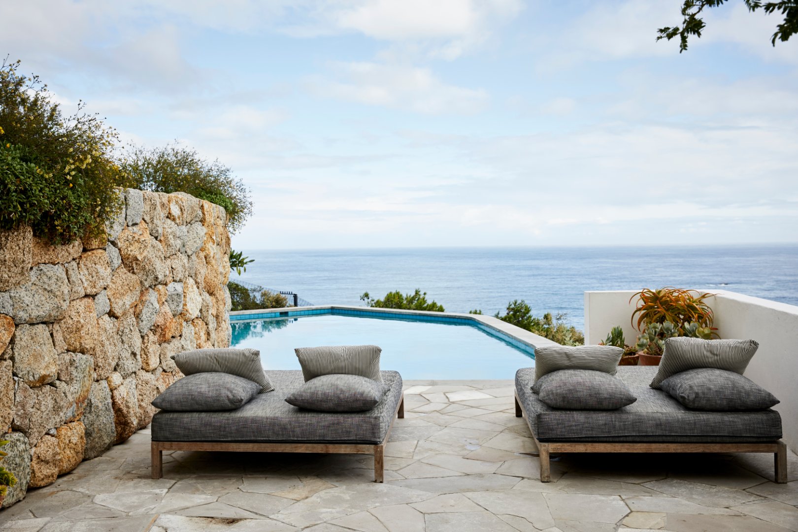 Set amidst a natural arrangement of granite boulders, hugging the contour of the cliff and a nature preserve, this villa is a private and secluded home located on the exclusive and sheltered Atlantic seaboard, bordering Clifton/Bantry Bay.