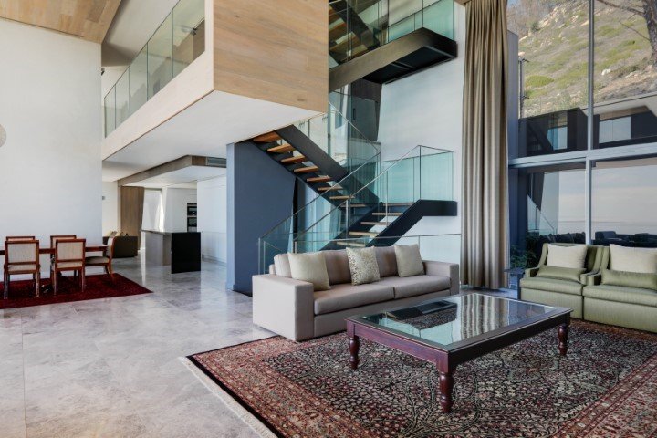 This contemporary house sits at the foot of Lions Head with magnificent, sweeping views of the Atlantic Sea Board below.