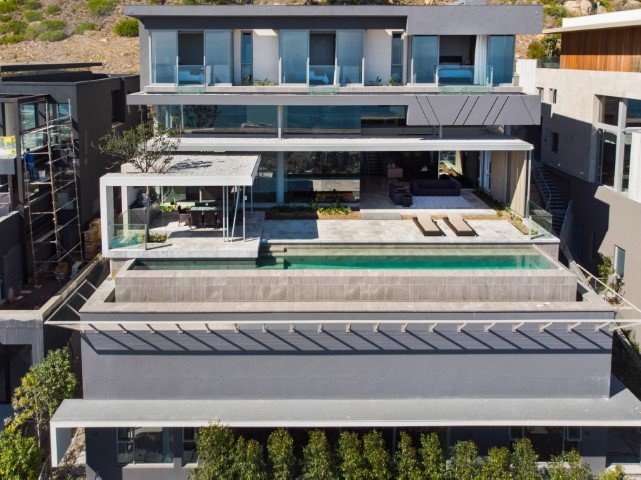 The home is spread over multiple levels and comprises four en-suite bedrooms, an open plan kitchen, a lounge, and a living area, which flow onto a large entertainment terrace with a rim flow pool with views abound.