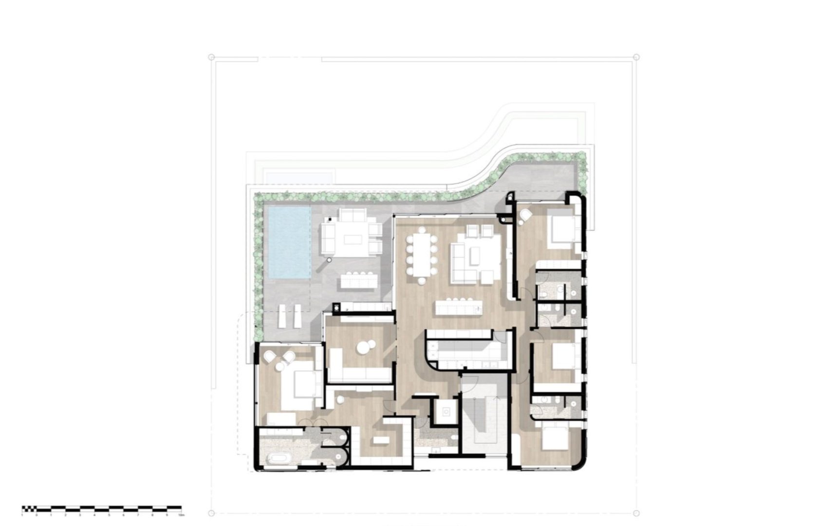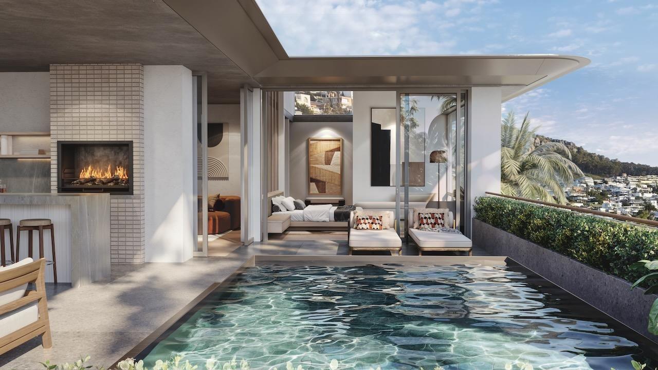 The Penthouse elevates this experience even further, capturing ocean, mountain, and city views from every angle. Featuring four luxuriously appointed en-suite bedrooms, it offers both comfort and sophistication at an exceptional scale. An expansive living area flows seamlessly onto a generous terrace, perfectly complemented by an outdoor bar, grill, and private pool—tailored for effortless entertaining. With direct lift access, privacy and convenience are paramount.