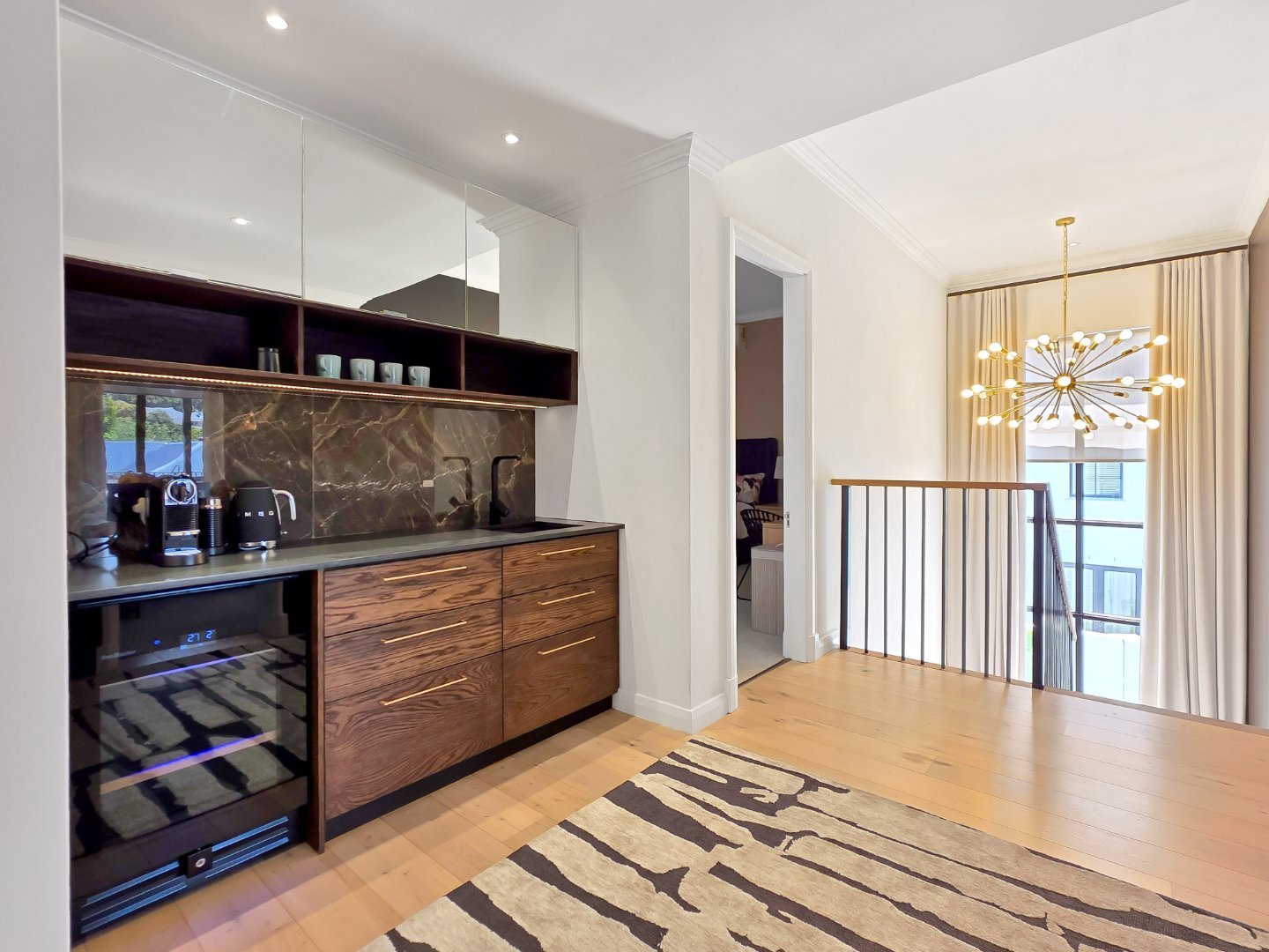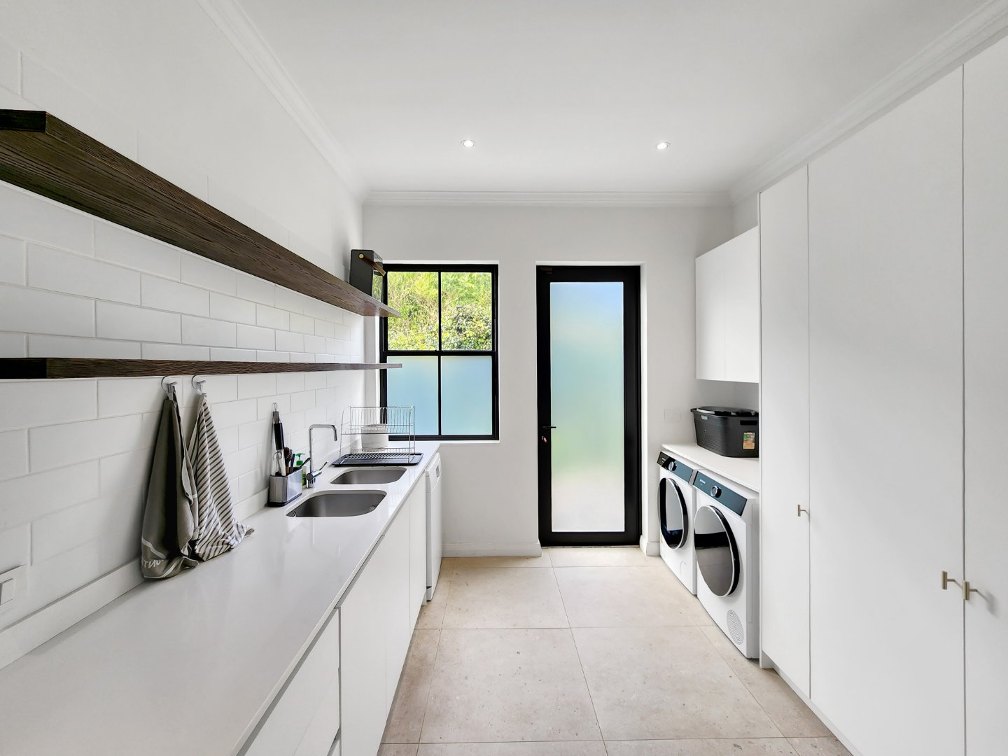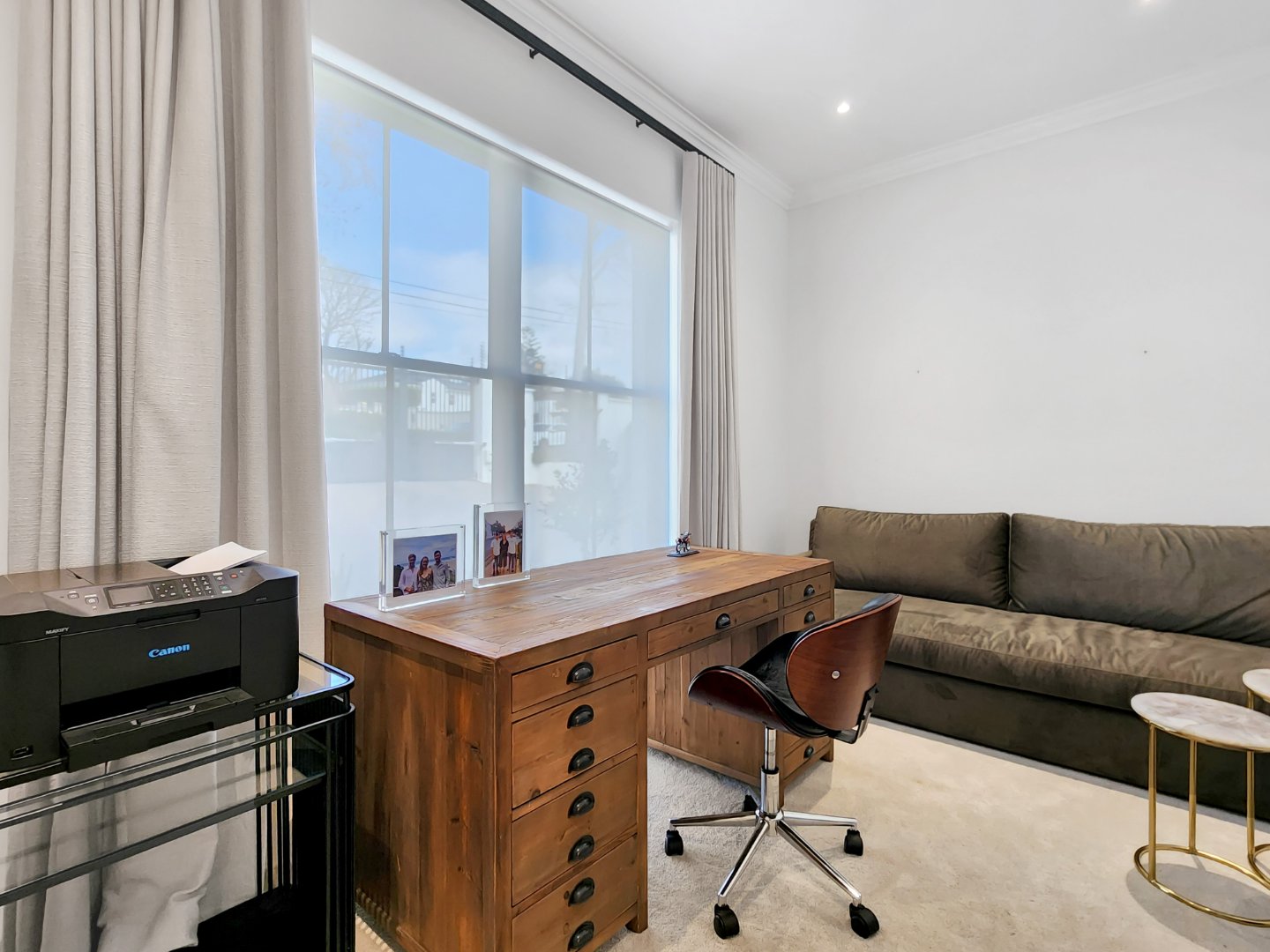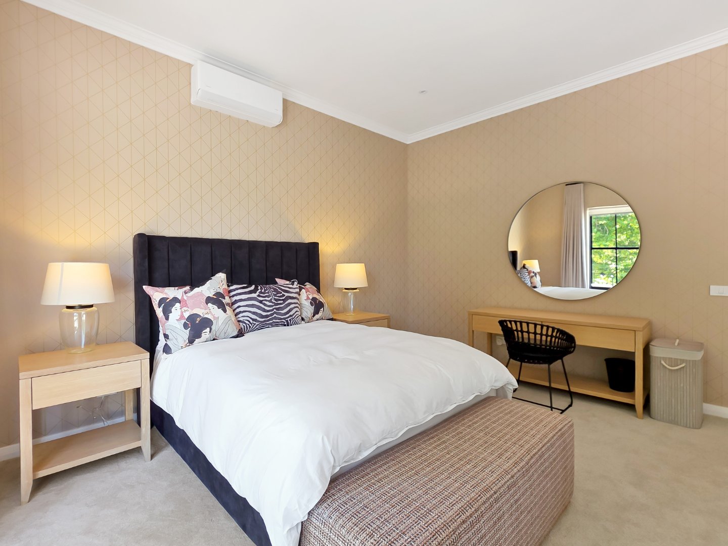 Everyday living is enhanced by considered details: a private study, a coffee station on the upper level, a glass wine room beneath the staircase, solar power for efficiency, and secure double garaging.
