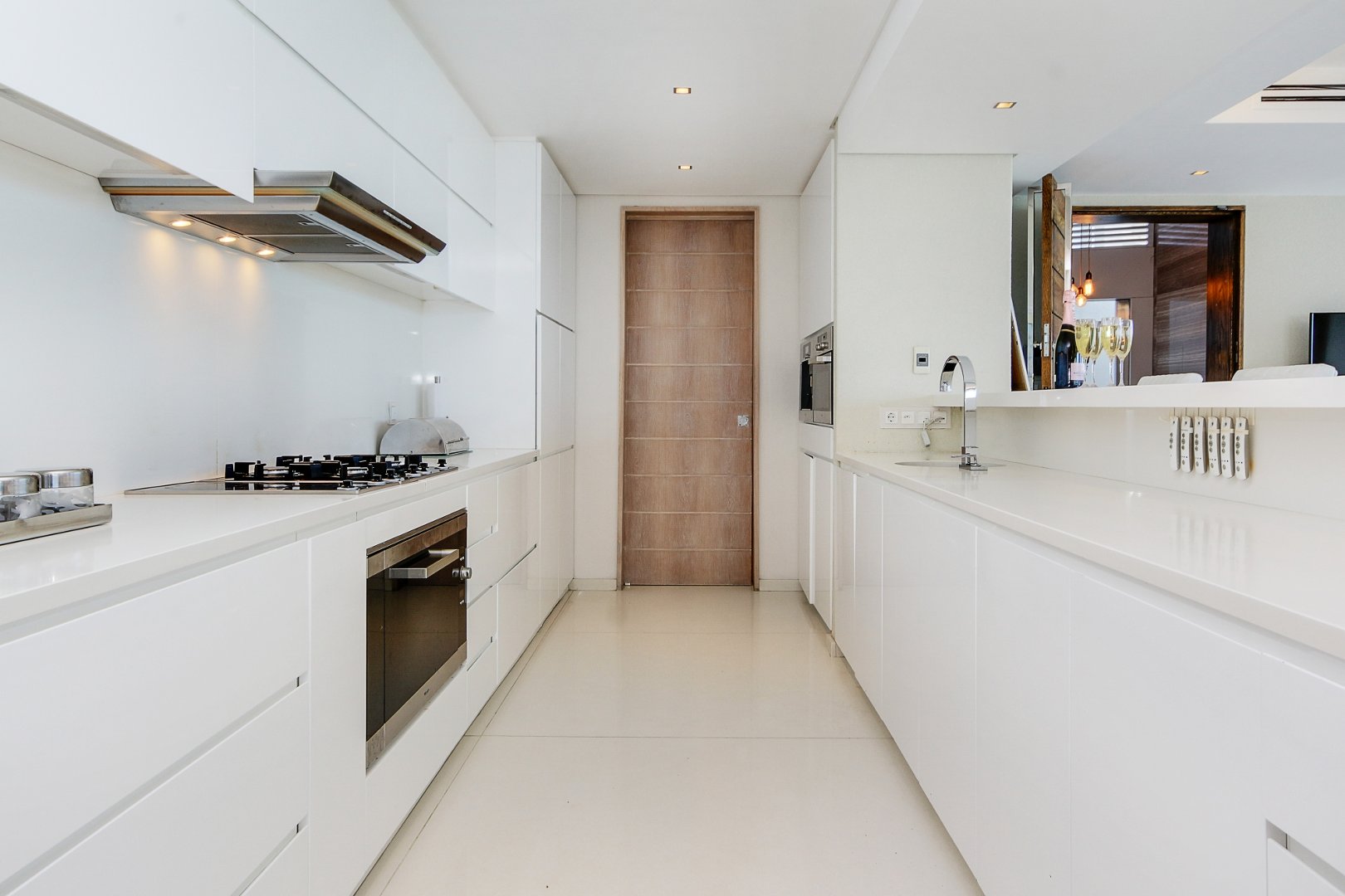 The heart of the home, the kitchen, is a culinary haven equipped with modern amenities. From the kitchen, your gaze extends to the elegant dining room and spacious lounge, creating a welcoming and inclusive atmosphere. The allure of the apartment is further heightened by the inclusion of folding glass doors that open onto a terrace overlooking a private swimming pool. This outdoor space becomes a serene retreat, providing the perfect setting for relaxation and social gatherings.