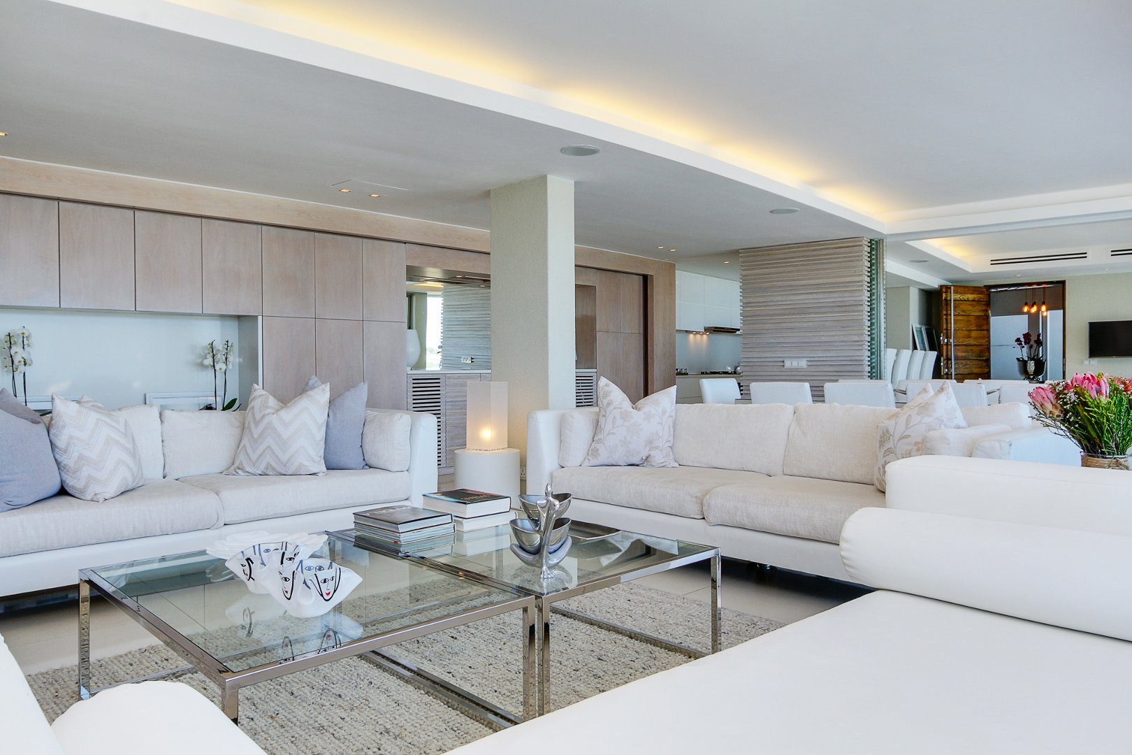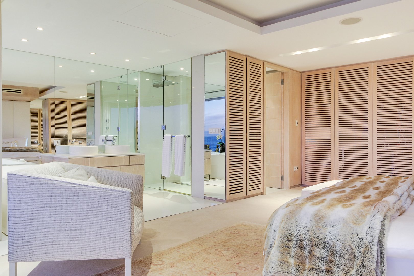 This exquisite 4-bedroom apartment, boasting en suite bathrooms for each bedroom, offers a luxurious living experience. Upon entry, you are greeted by a tastefully designed guest bathroom conveniently connected to a cosy yet separate smaller TV room. The open-plan layout seamlessly connects the kitchen, dining room, and lounge, creating a harmonious flow for both daily living and entertaining.
