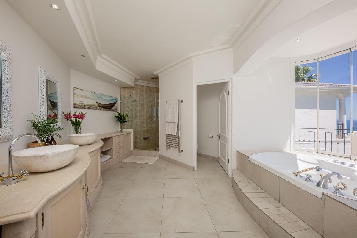 The sweeping spiral staircase takes you to the master suite that is home to unsurpassed ocean views which can be enjoyed from the terrace, an ensuite and a dressing room. Located on this floor are three further bedrooms with partial views.