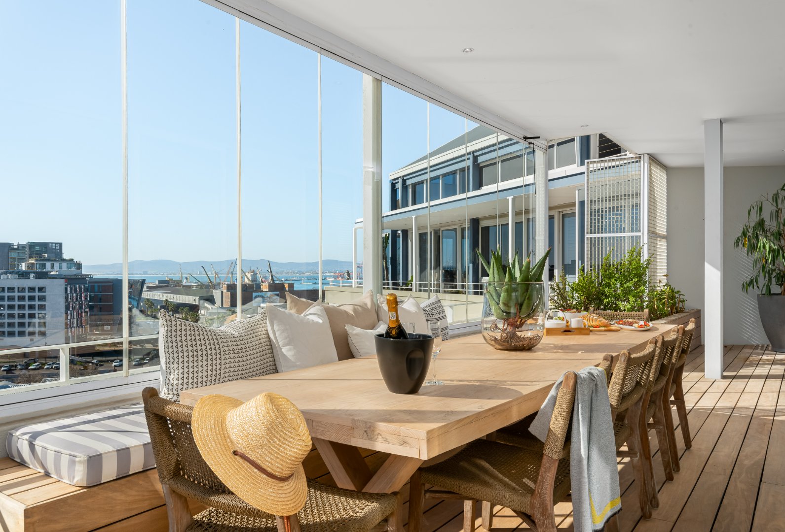 Indulge in the stylish living space, with large indoor and outdoor dining areas, leaving you utterly spoiled for choice. For those needing a workspace, the penthouse includes an office area with natural light streaming in through floor-to-ceiling windows, ensuring productivity in an inspiring setting. From the private pool and sundeck on the upper level, the iconic Table Mountain looms large in the vista, with the yacht marina directly in front of the apartment.