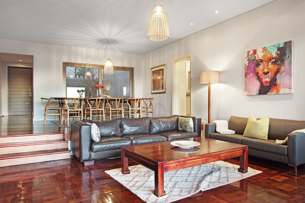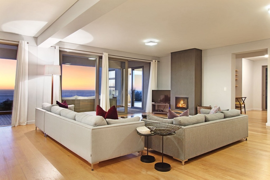 The interiors upstairs are Scandavian inspired with light wooden floors and a palette of cool colours throughout. A wood fireplace makes this a cosy spot for Winter where one can sit and enjoy Cape Town’s exquisite sunsets. An ideal home with two separate levels that can be enjoyed for those that want to be together but also accommodates personal space!
