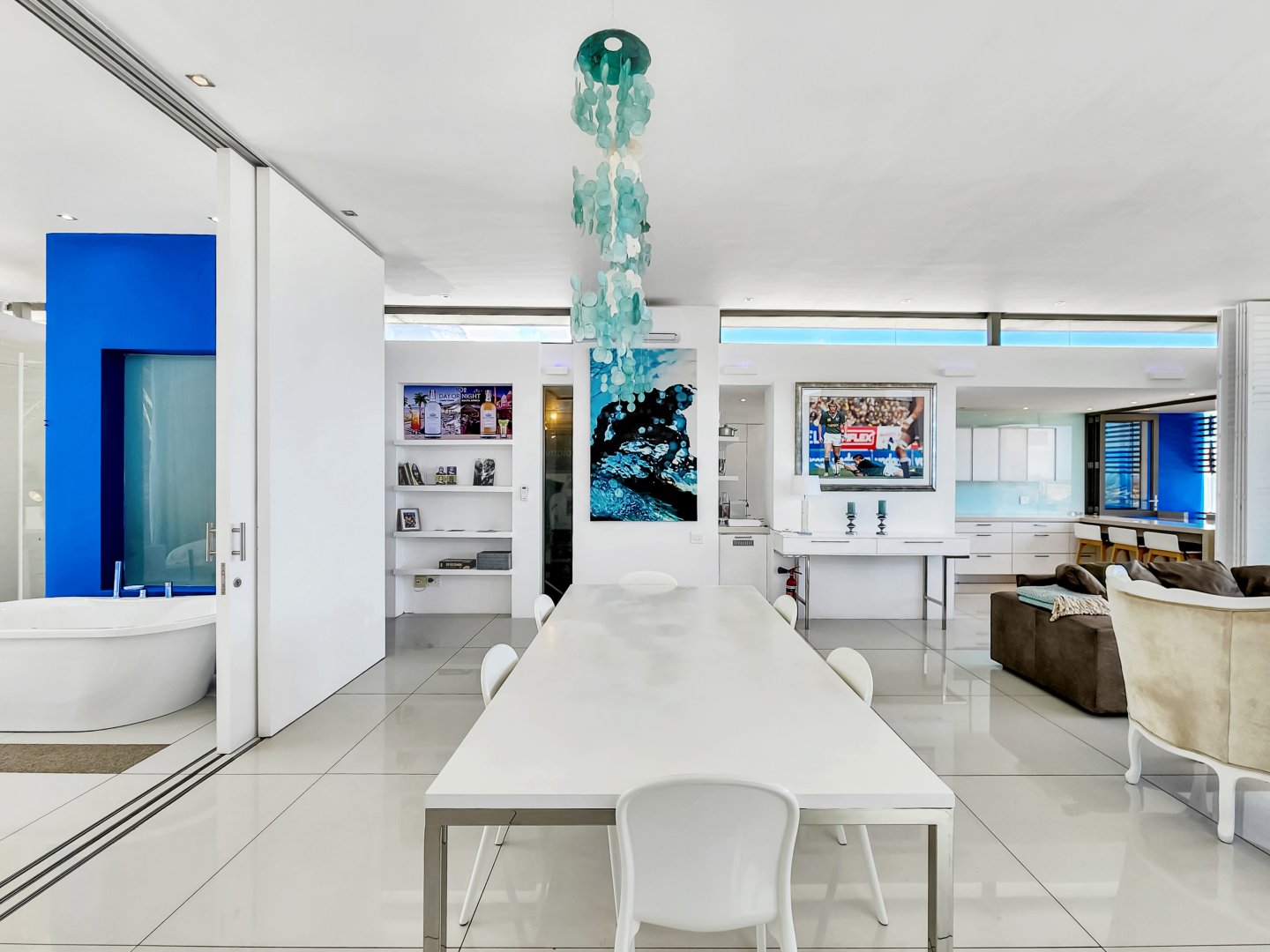 Notably, the staircase leading to the open-plan living area is steeped in rich South African rugby tradition and history. On 16 August 2008, Monty made history as the first Springbok to play 100 test matches, contributing heart and soul to South Africa. The staircase provides a unique opportunity to experience Monty’s remarkable World Cup-winning Test career as you ascend the three-story structure.