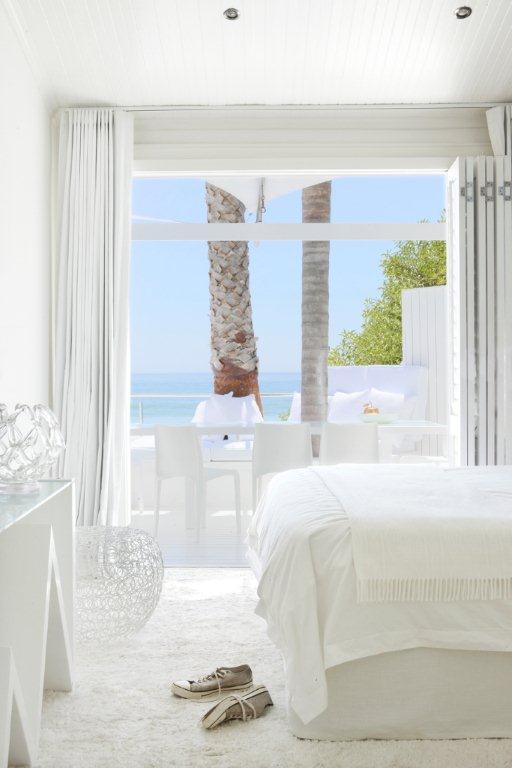 The living area consists of a large open-plan kitchen / lounge / dining room, opening on to the pool deck directly above the beach. The dining room seats 8 people, with casual and formal dinner services to suit a variety of dining requirements. The living area is equipped with TV, DVD and DSTV, with a sound system that is connected to indoor and outdoor speakers. There is WIFI though out the Bungalow. Access to Netflix, Show Max and YouTube. Office facilities such as Printer, Copier and Scanner all connected via WIFI. The Pool deck has a bar area, outdoor dining area, pool and braai, as well as lounging facilities under palm trees.