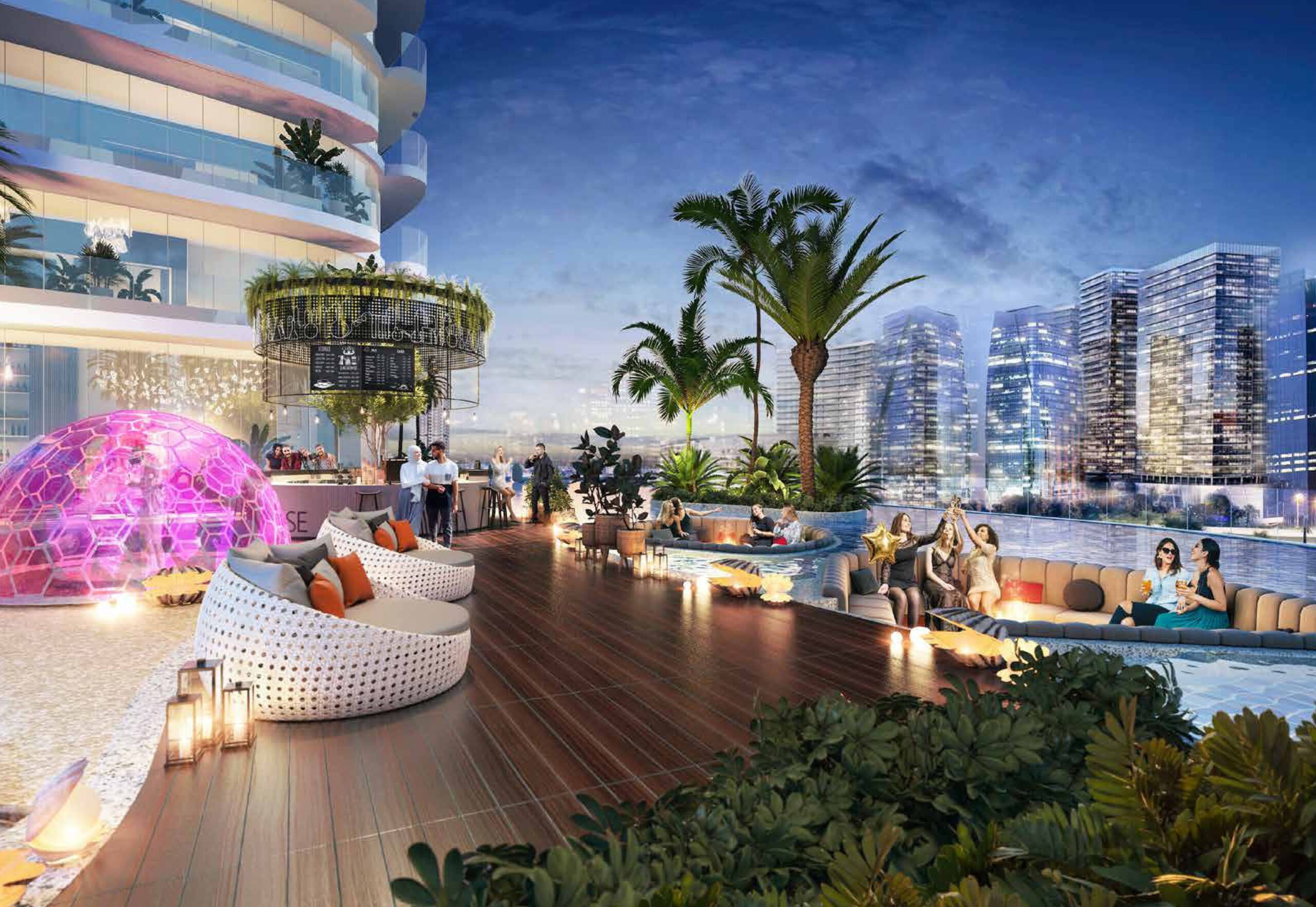 Enter the Canal Heights lobby and immerse yourself in a shifting, otherworldly glow, as you’re surrounded by magnificent colours, effervescent textures, and fluid forms that reflect a Damac-styled luxury.