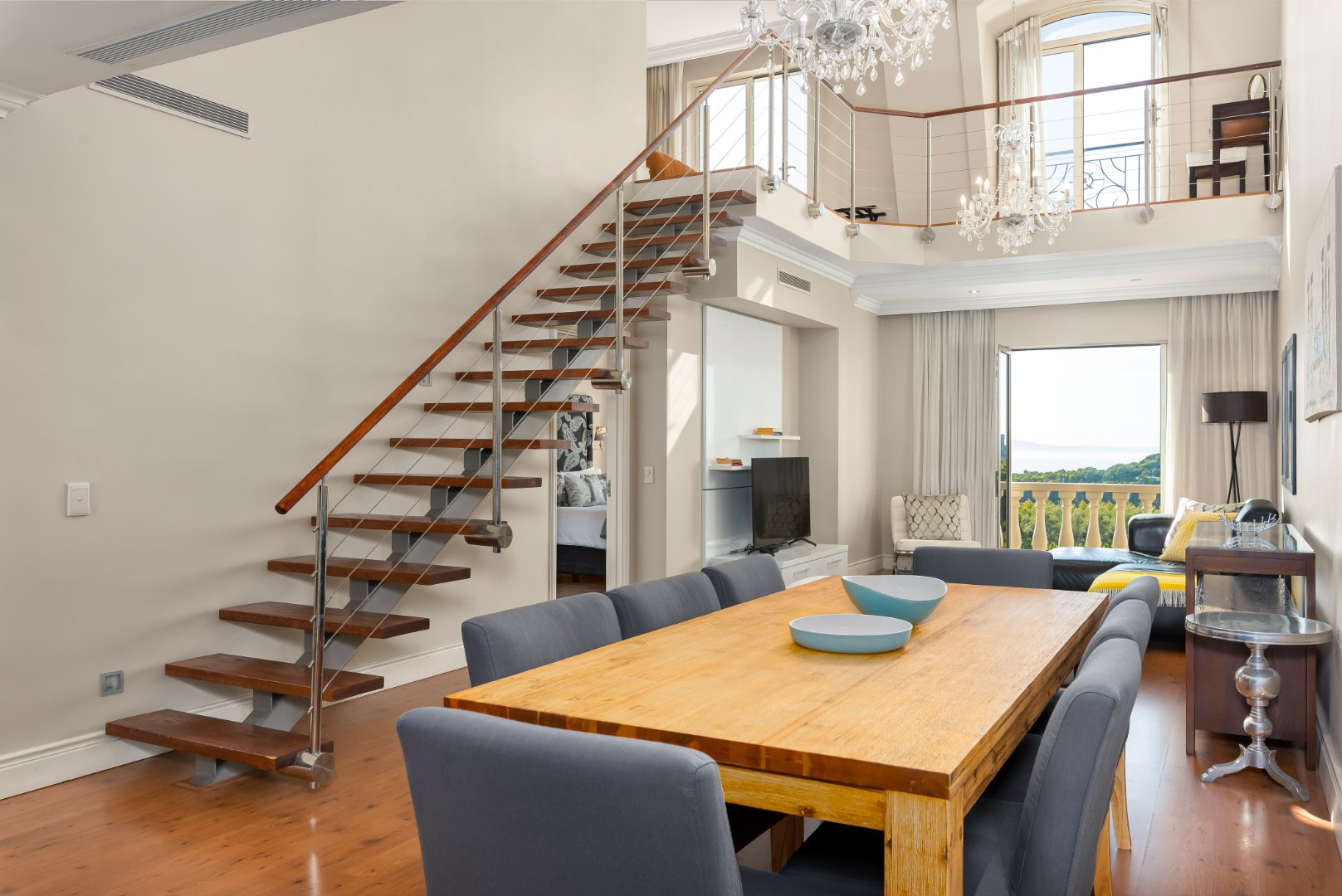 – Upper level and open plan to living areas