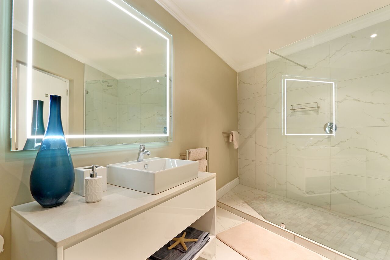 On the entrance level of the property you will find two of the bedrooms. One being the Master Suite with walk in dressing room and en-suite bathroom with double vanity, walk in shower and bath overlooking the ocean.