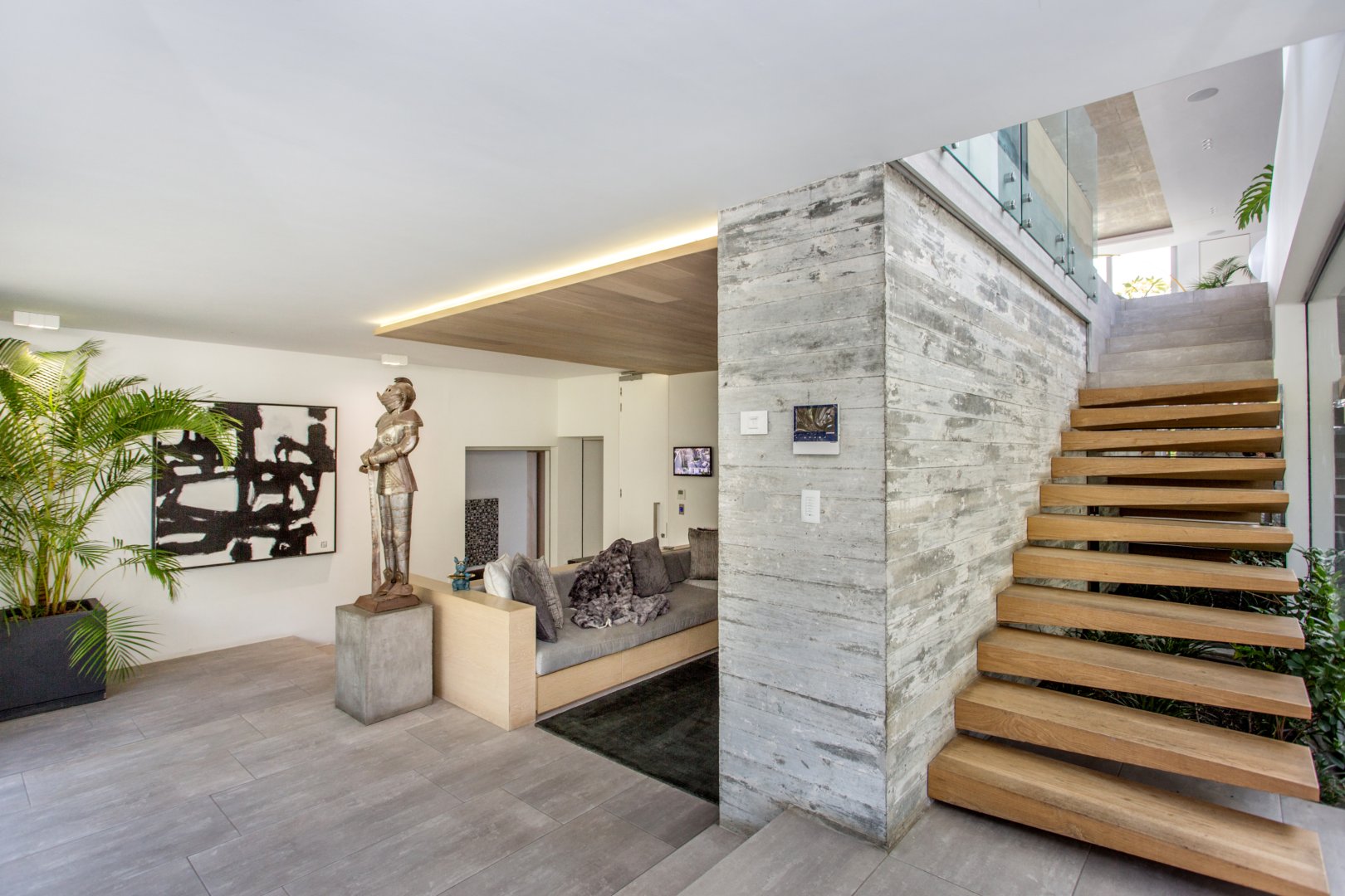 Step inside to the first level to discover a state-of-the-art kitchen and scullery, formal and informal lounges, and a dining room that seamlessly flows to a magnificent pool terrace. The outdoor area boasts a sparkling pool, Jacuzzi, manicured garden, and comfortable lounging areas, providing the perfect setting for relaxation and entertainment.