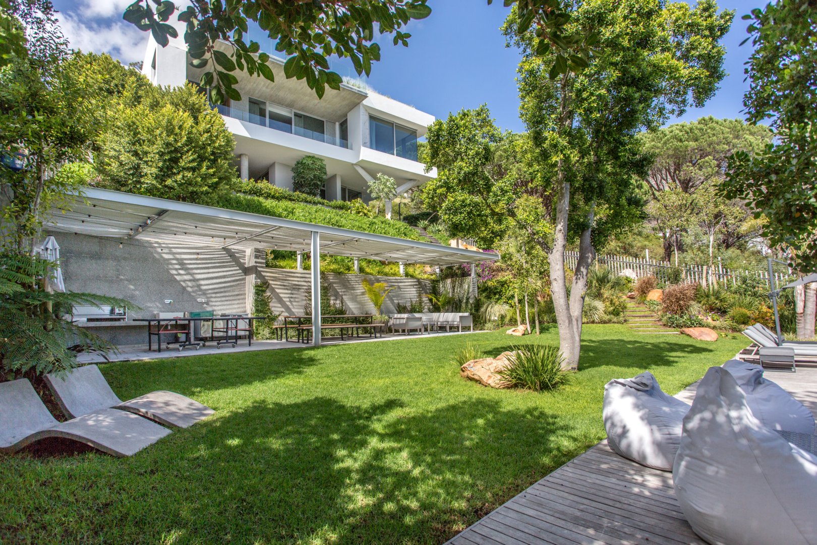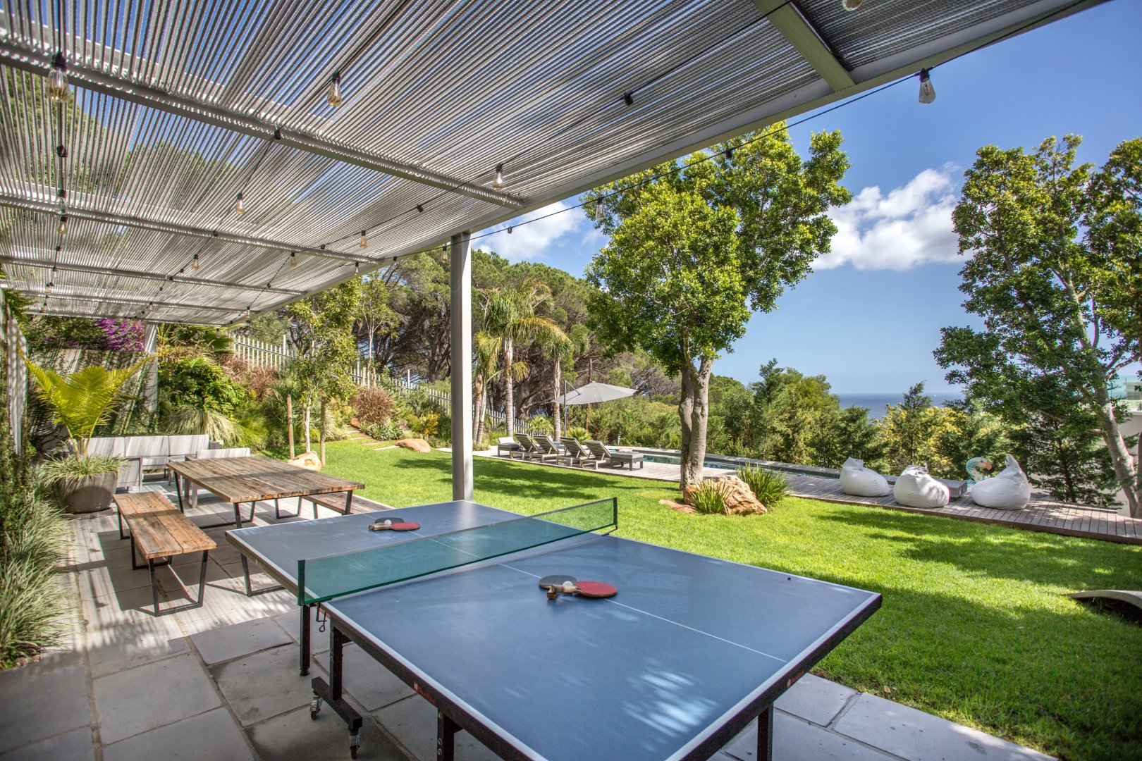 The second entertainment section is equally impressive, with a vast garden, pool, and a covered lounging area with a braai, perfect for hosting gatherings and special events.