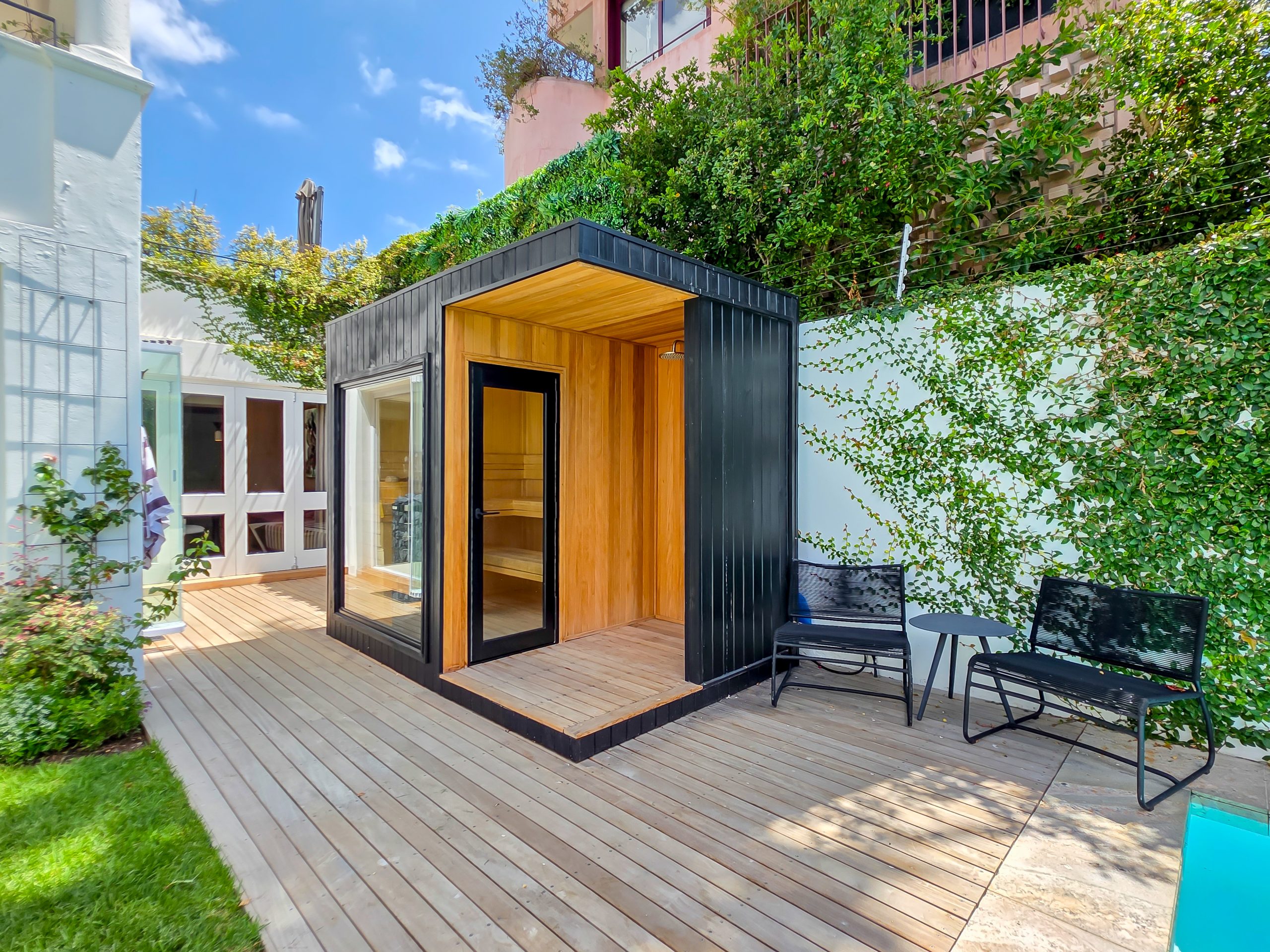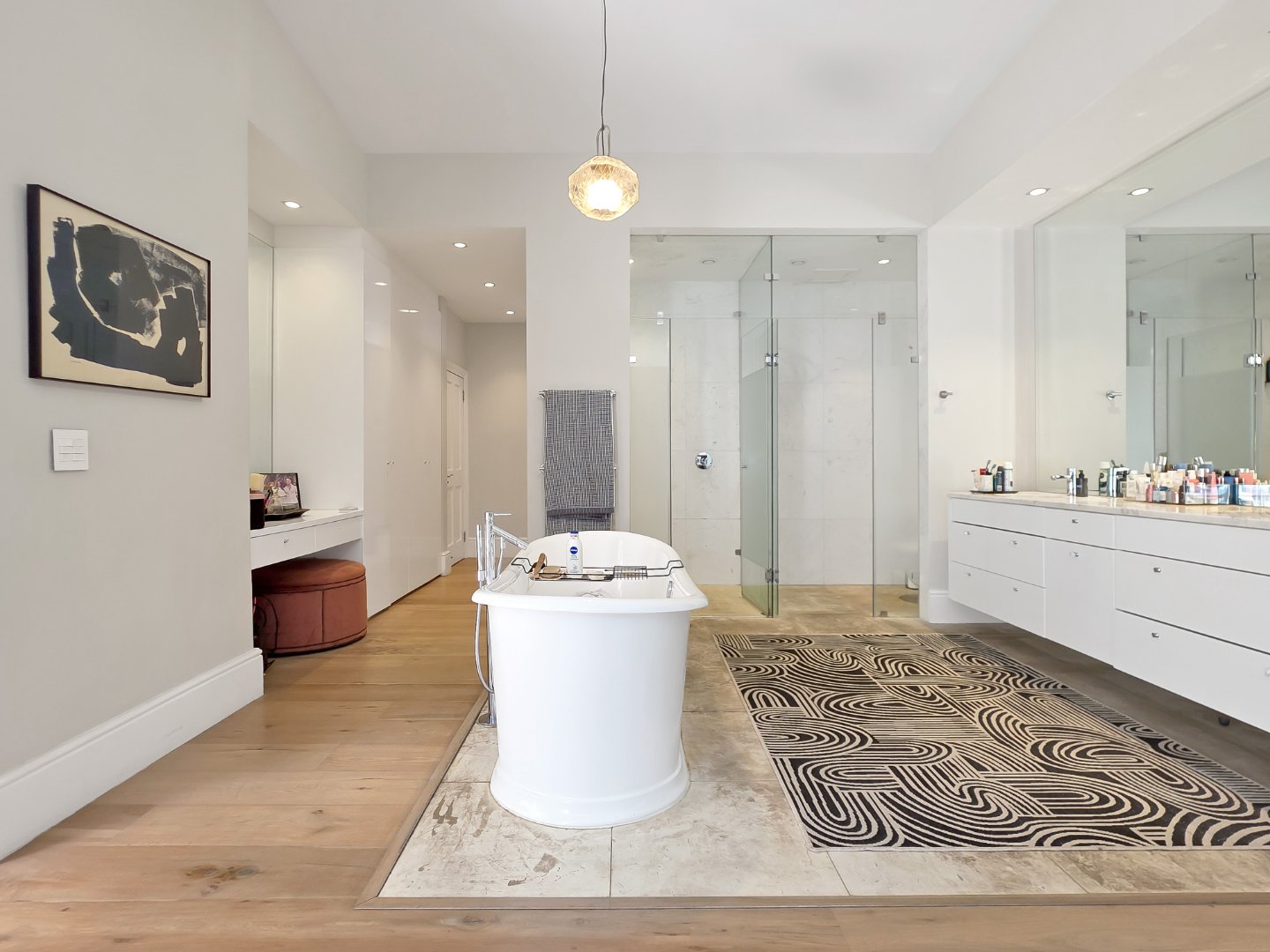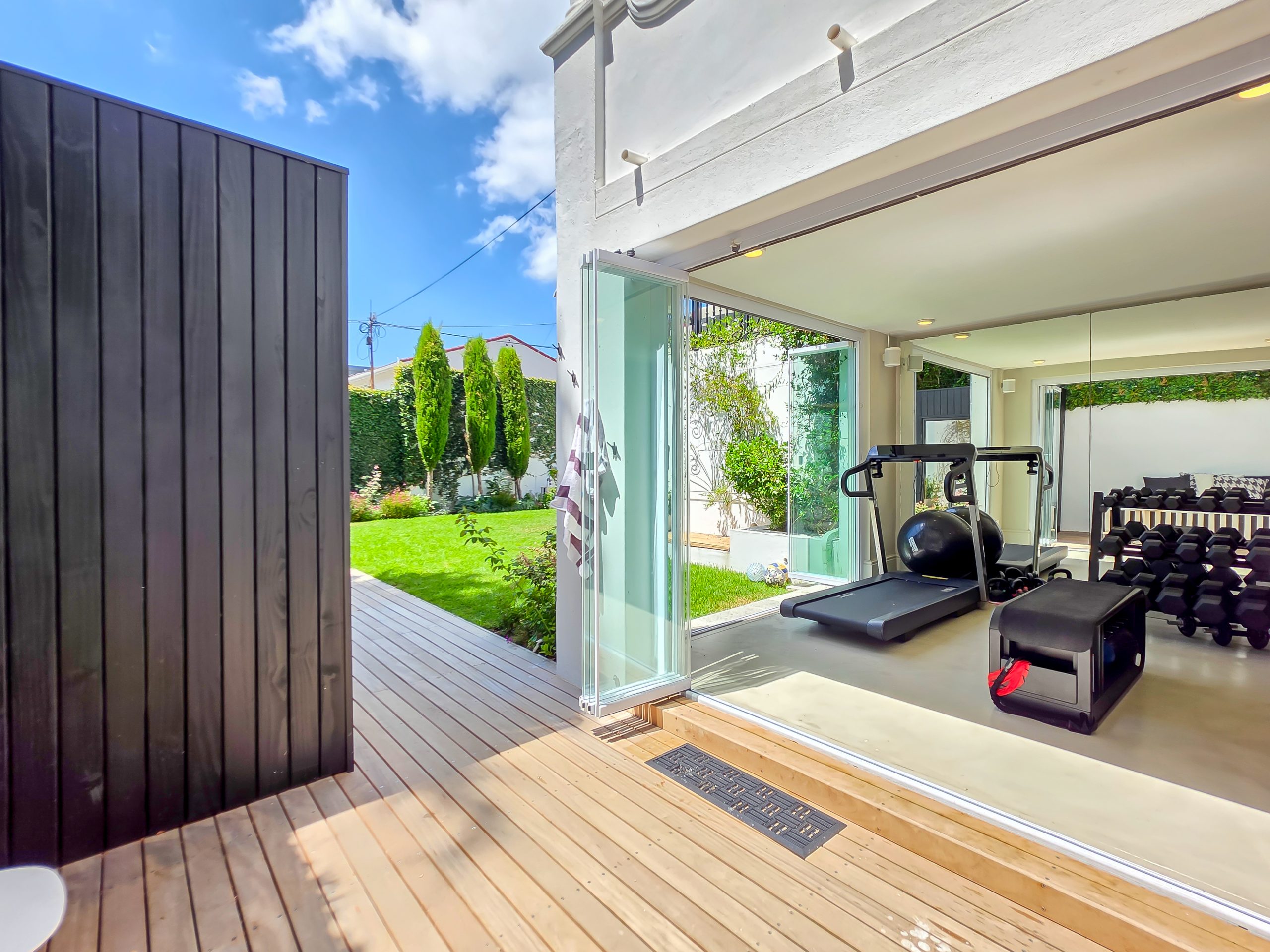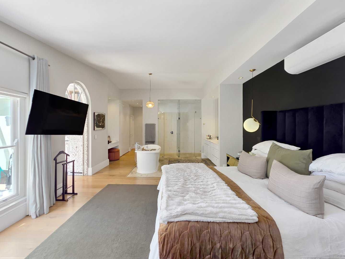 The villa features four spacious en-suite bedrooms, each thoughtfully styled to provide comfort, privacy, and a restful retreat after a day spent exploring the city. Elegant interiors with high ceilings, soft neutral tones, and carefully considered finishes flow seamlessly through the open-plan living and dining areas, which connect directly to covered verandas and outdoor lounges. A stylish entertainment area with a built-in bar enhances the home’s appeal, while a private gym and sauna elevate the experience, allowing guests to maintain wellness routines or unwind in complete privacy.