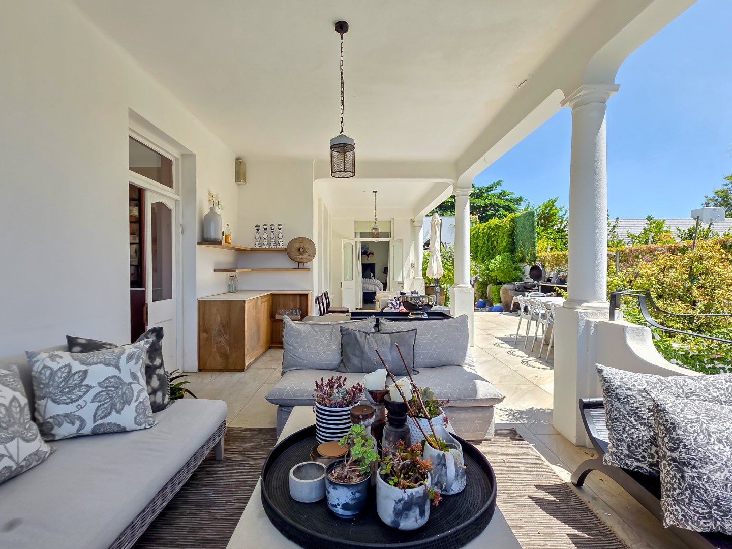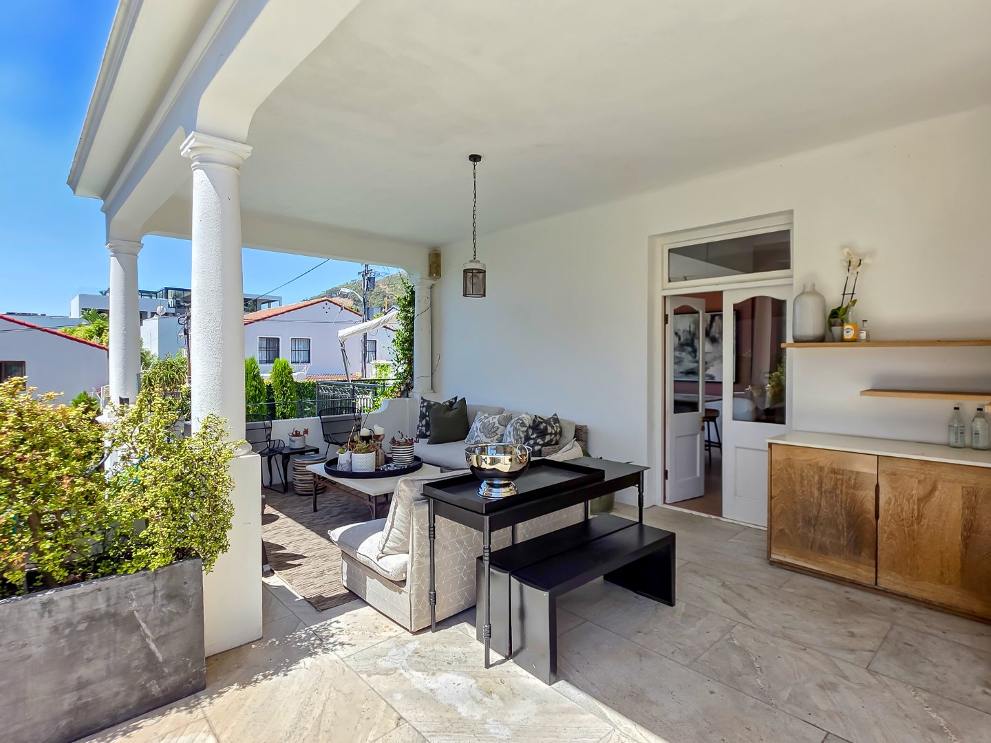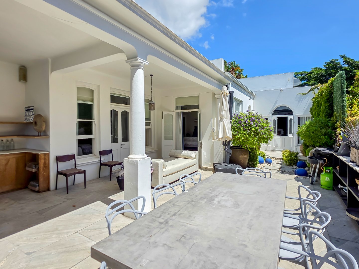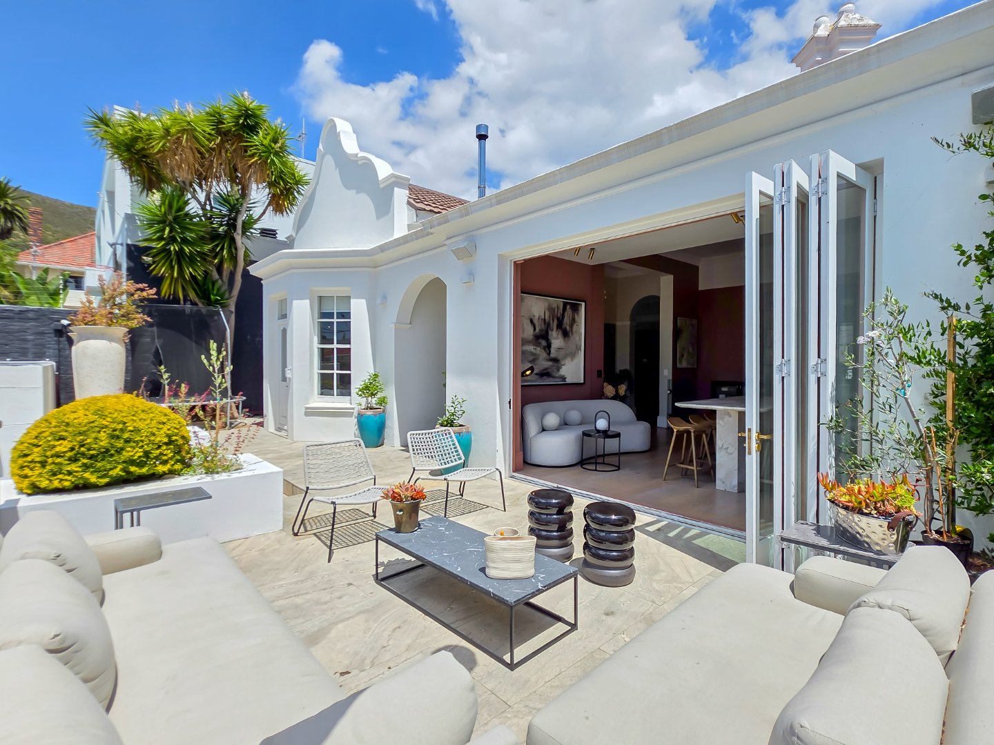 Tucked away in a peaceful residential setting, this beautifully curated four-bedroom, four-bathroom villa offers an exceptional Cape Town holiday experience where classic charm meets contemporary comfort. Designed for effortless indoor-outdoor living, the home unfolds into a series of light-filled spaces that open onto lush landscaped gardens, sun-drenched terraces, and a private swimming pool, creating a relaxed yet refined atmosphere ideal for unwinding and entertaining.