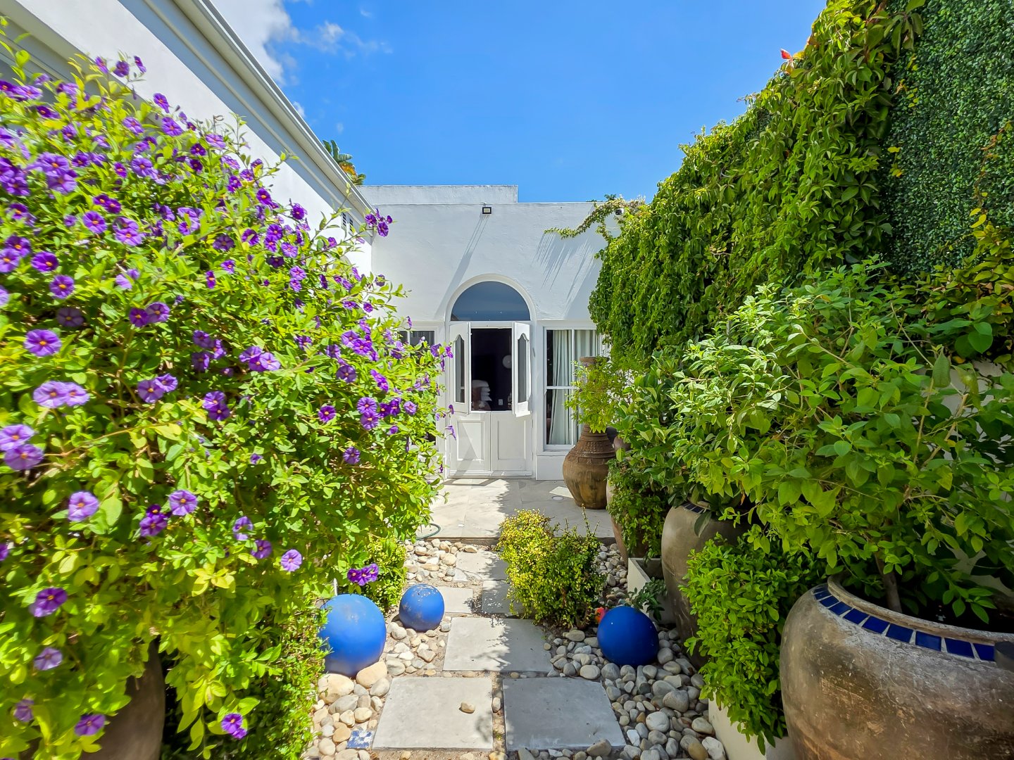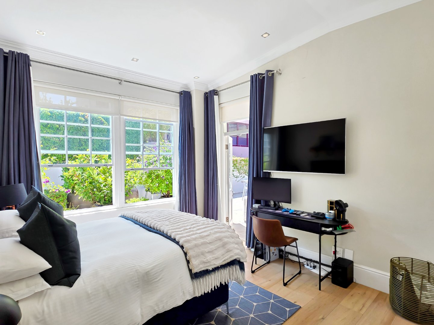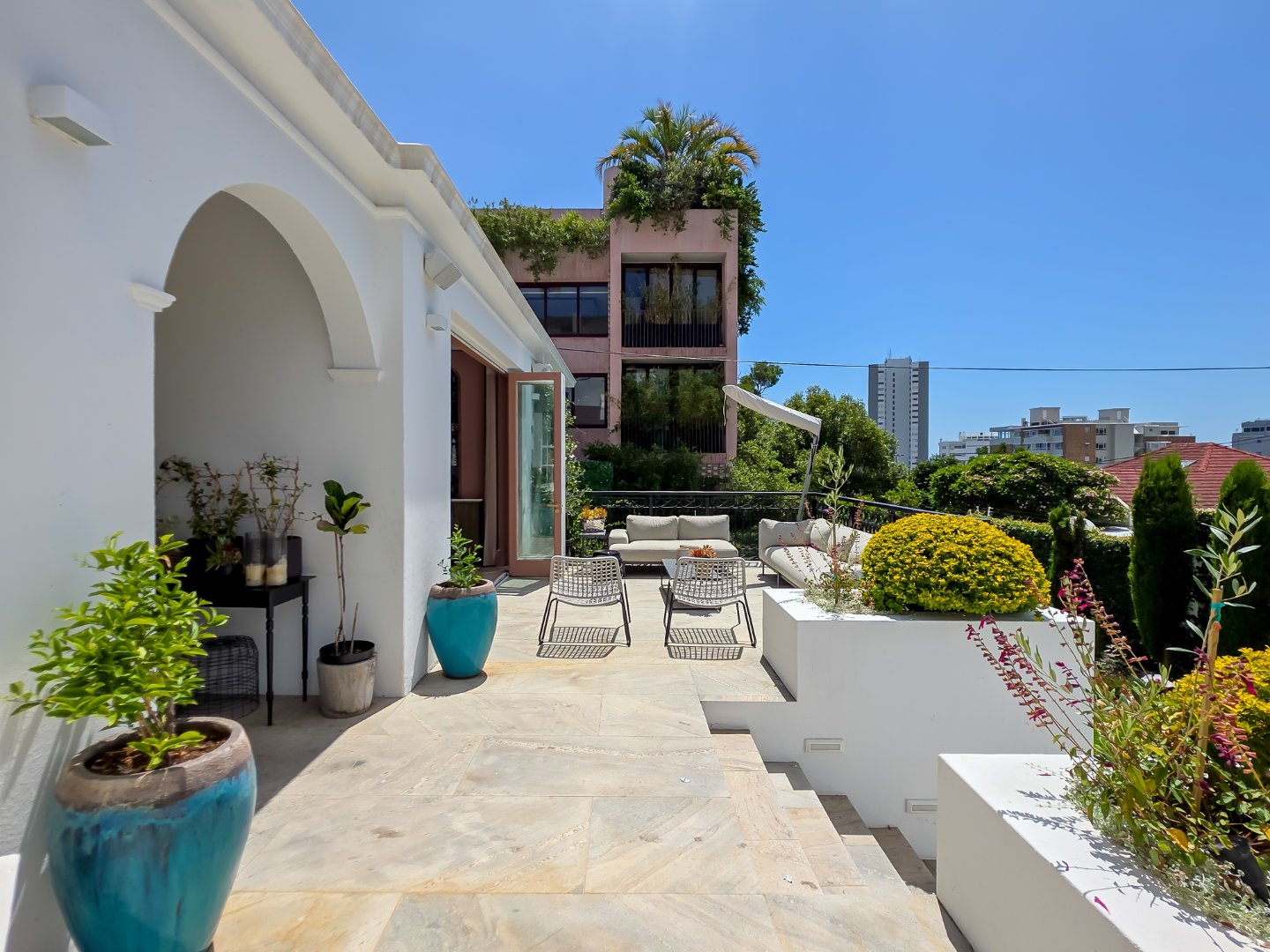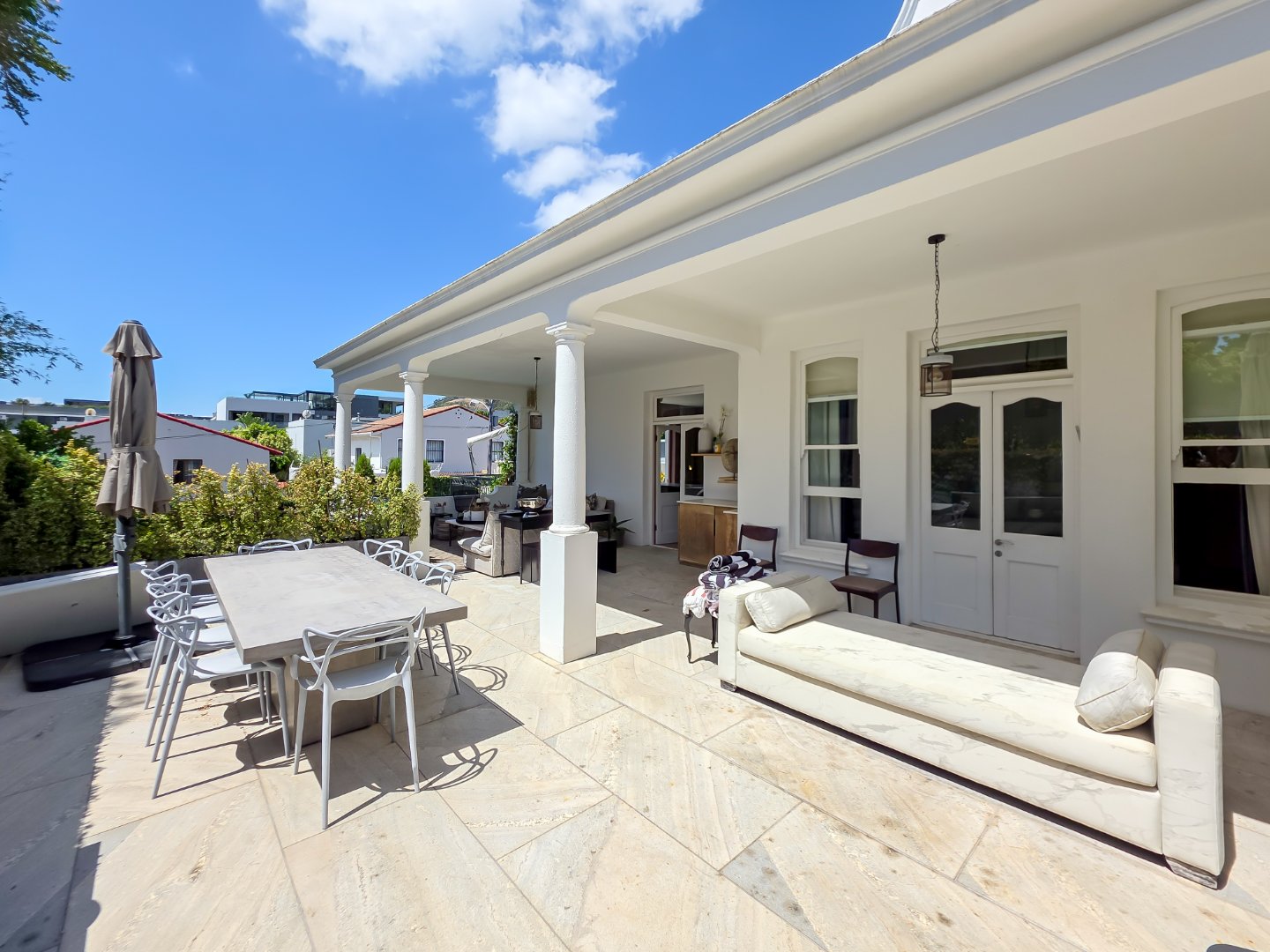 Tucked away in a peaceful residential setting, this beautifully curated four-bedroom, four-bathroom villa offers an exceptional Cape Town holiday experience where classic charm meets contemporary comfort. Designed for effortless indoor-outdoor living, the home unfolds into a series of light-filled spaces that open onto lush landscaped gardens, sun-drenched terraces, and a private swimming pool, creating a relaxed yet refined atmosphere ideal for unwinding and entertaining.
