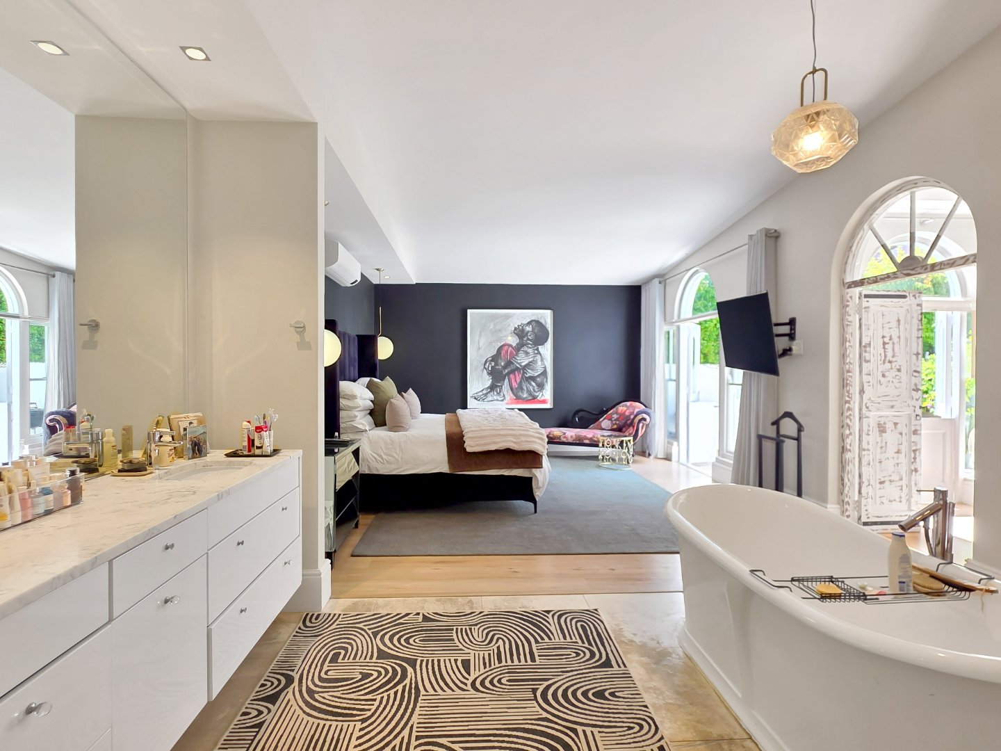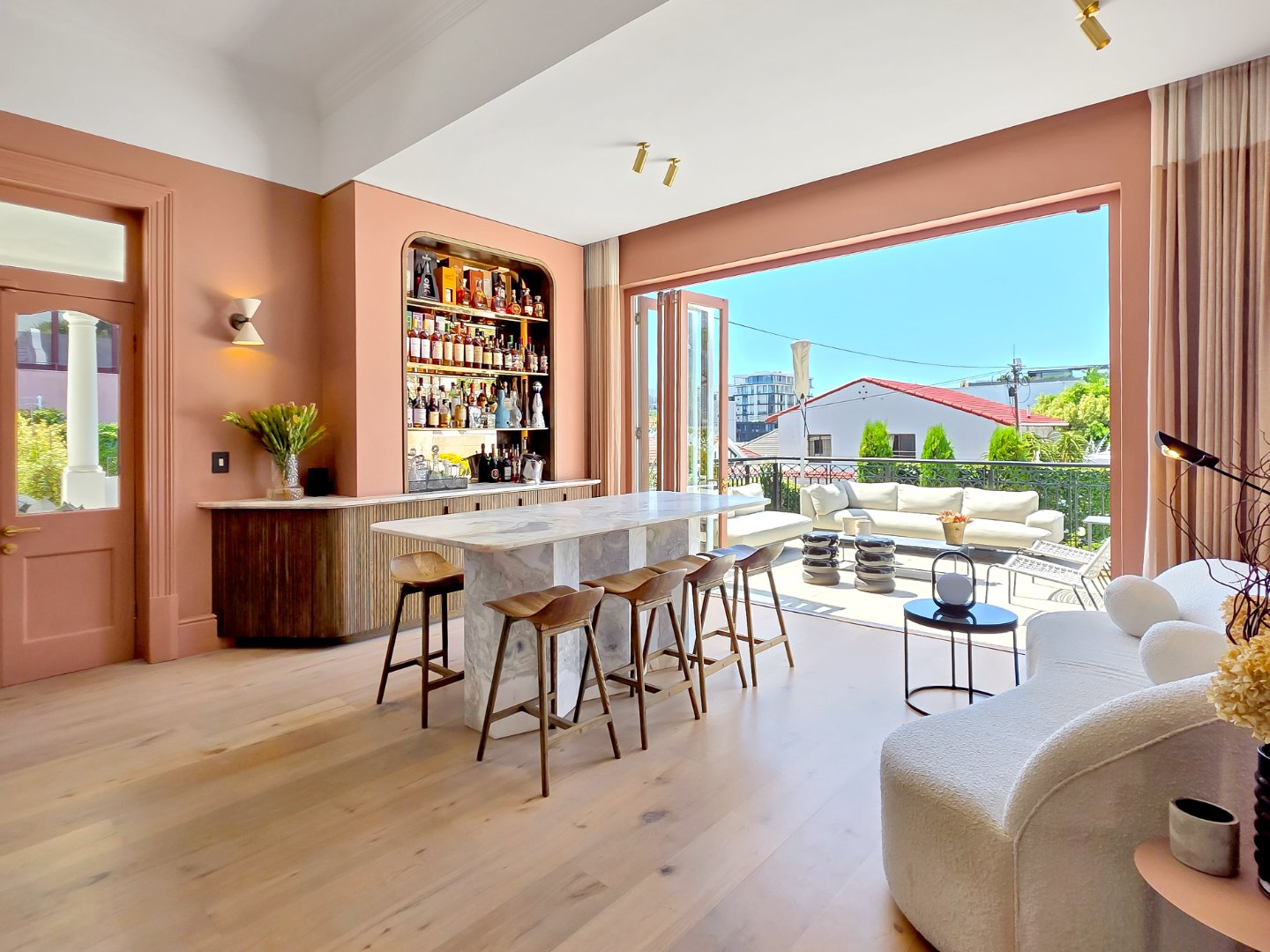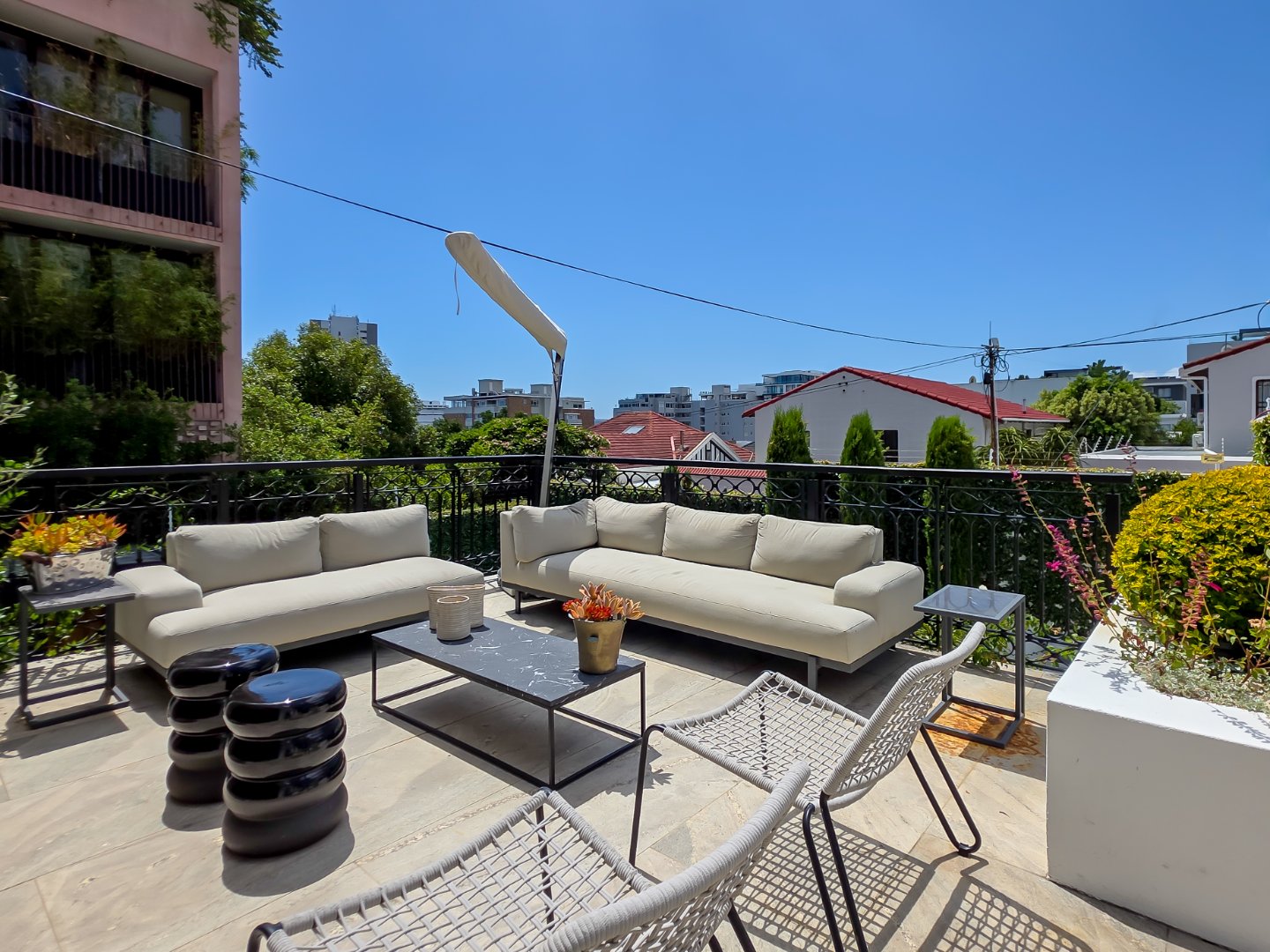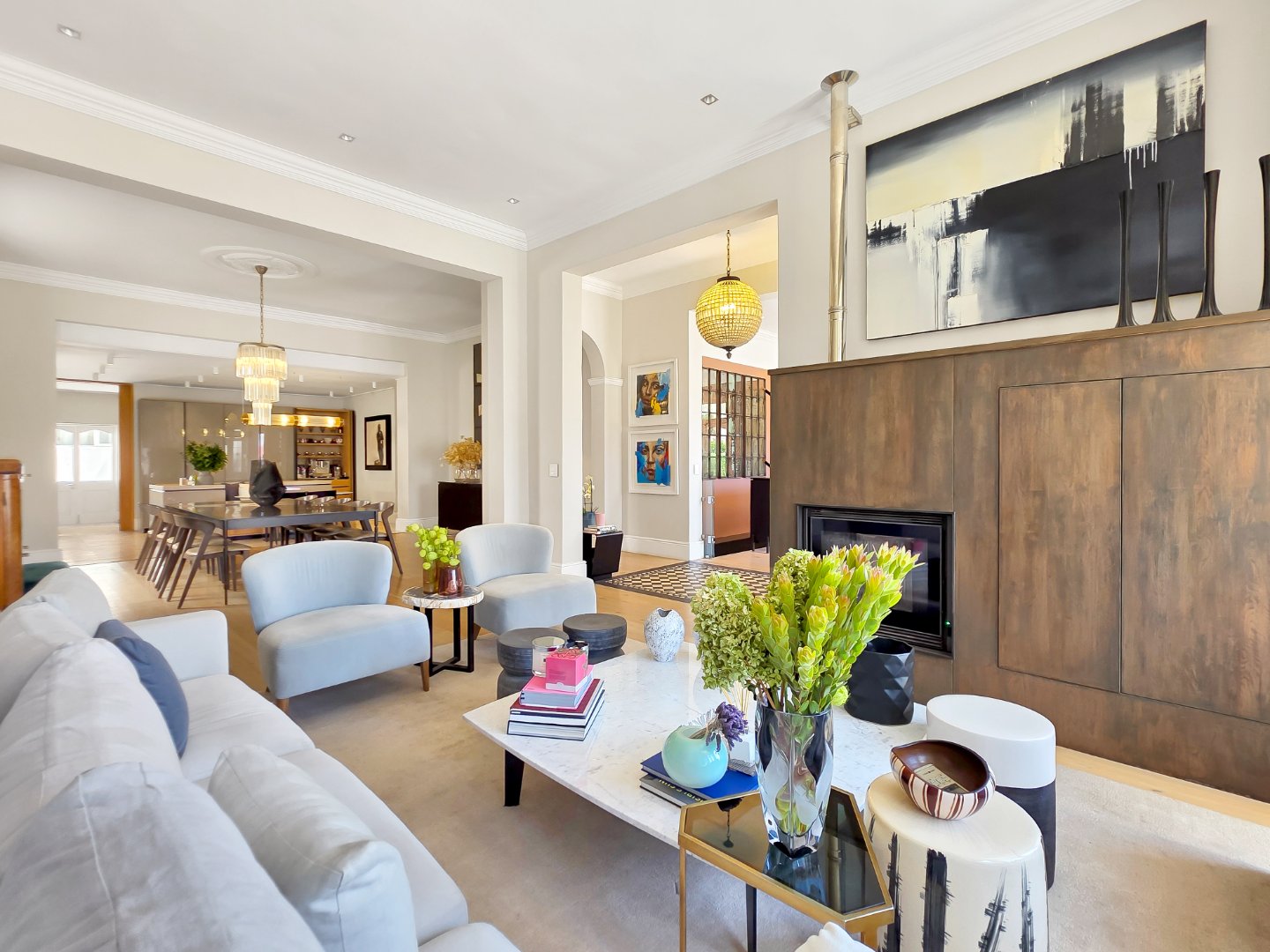 Tucked away in a peaceful residential setting, this beautifully curated four-bedroom, four-bathroom villa offers an exceptional Cape Town holiday experience where classic charm meets contemporary comfort. Designed for effortless indoor-outdoor living, the home unfolds into a series of light-filled spaces that open onto lush landscaped gardens, sun-drenched terraces, and a private swimming pool, creating a relaxed yet refined atmosphere ideal for unwinding and entertaining.