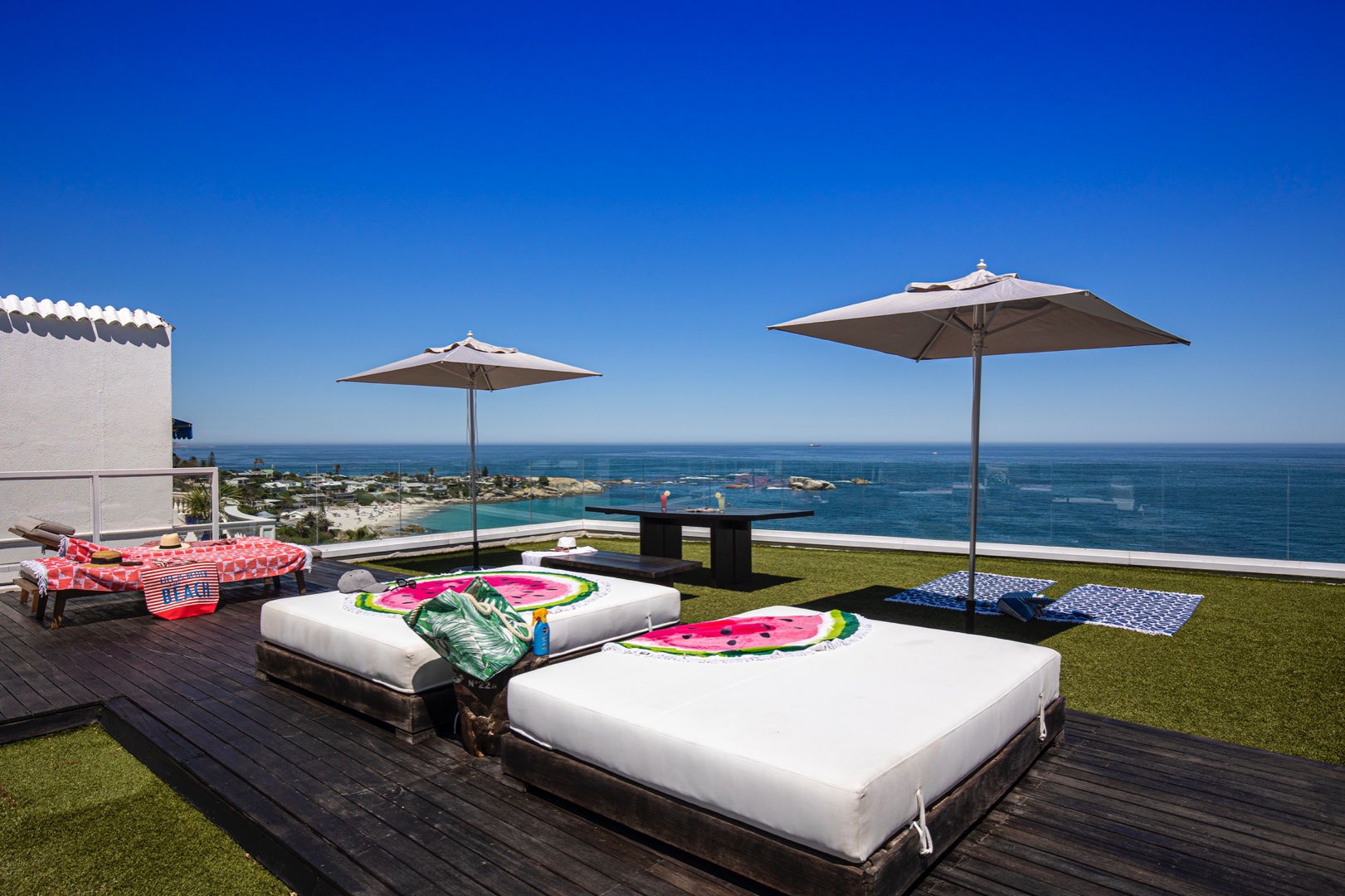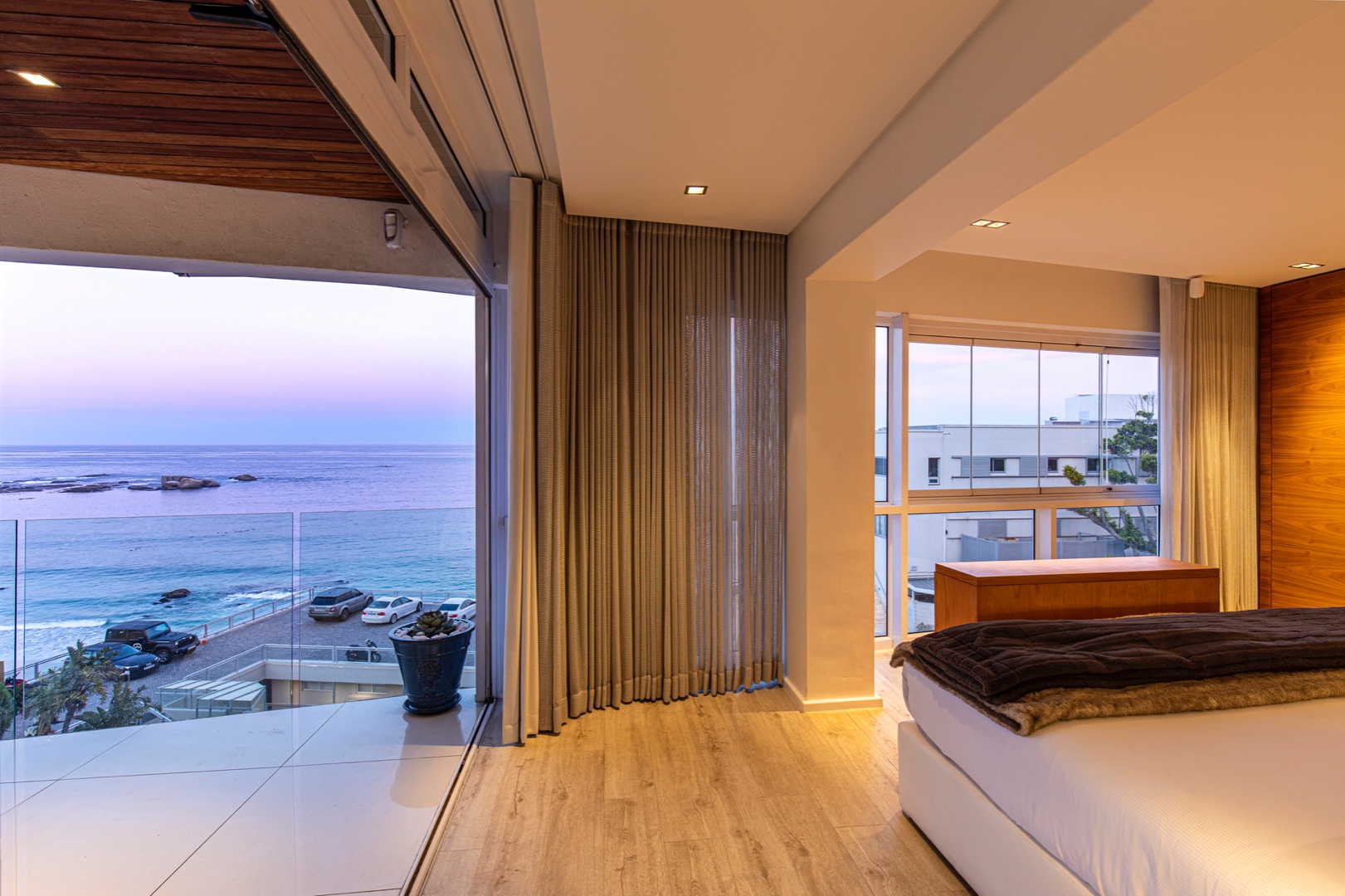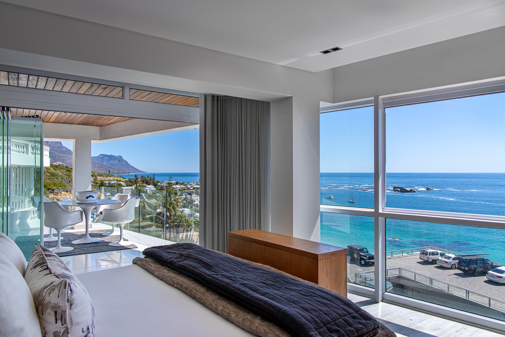 The lounge and master bedroom leads out onto a patio through modern glass sliding doors revealing the most breathtaking views of the Atlantic Ocean and Clifton Beaches.