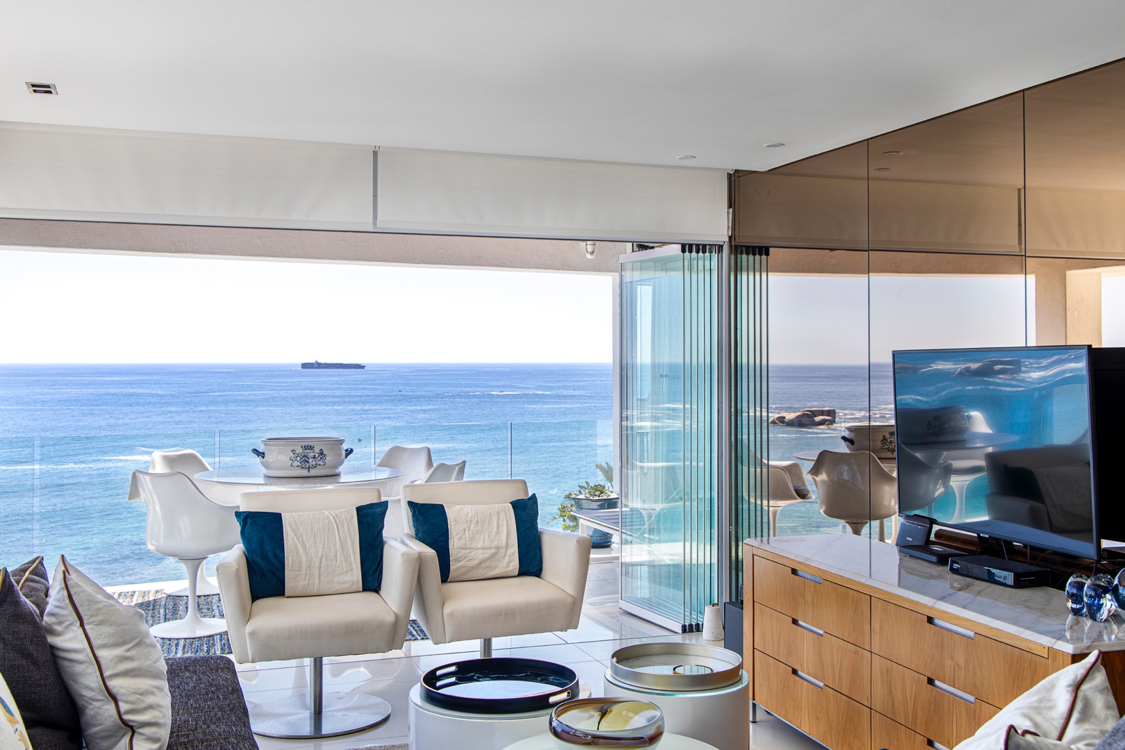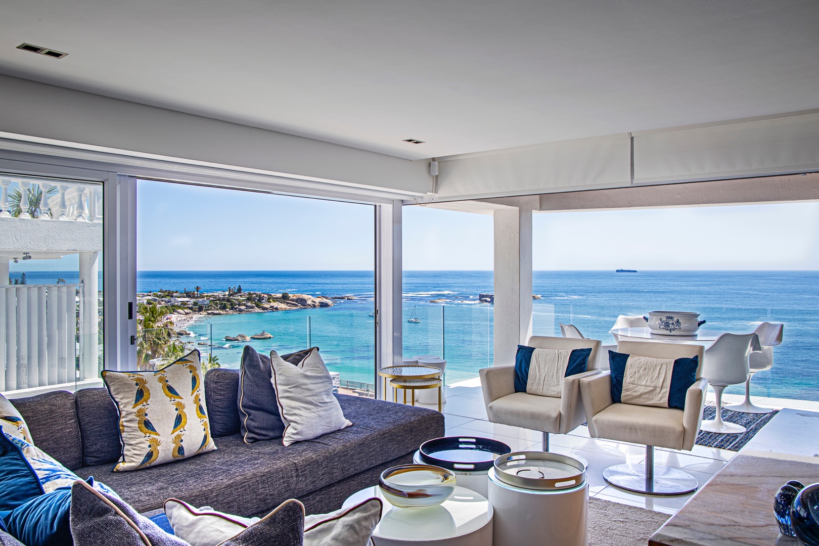 A spectacular indoor and outdoor experience in an incredible Cape Town penthouse apartment which offers uninterrupted ocean views blending into The Twelve Apostles Mountain Range with clear side views of the famous Lions Head.
