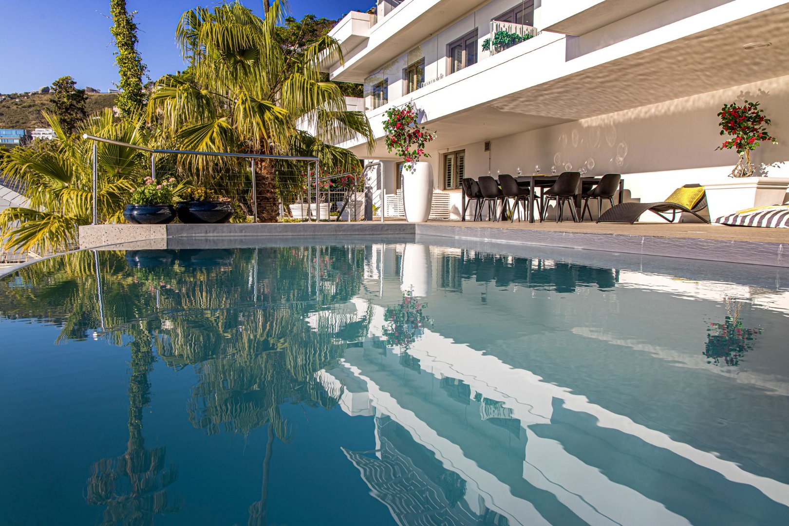 Large floor-to-ceiling mirrors throughout most of the interior spaces create a feeling of extra space and aid in bringing the ocean and mountain views indoors. Heading out onto the terraces with a private infinity pool to enjoy uninterrupted views of the Atlantic Ocean.