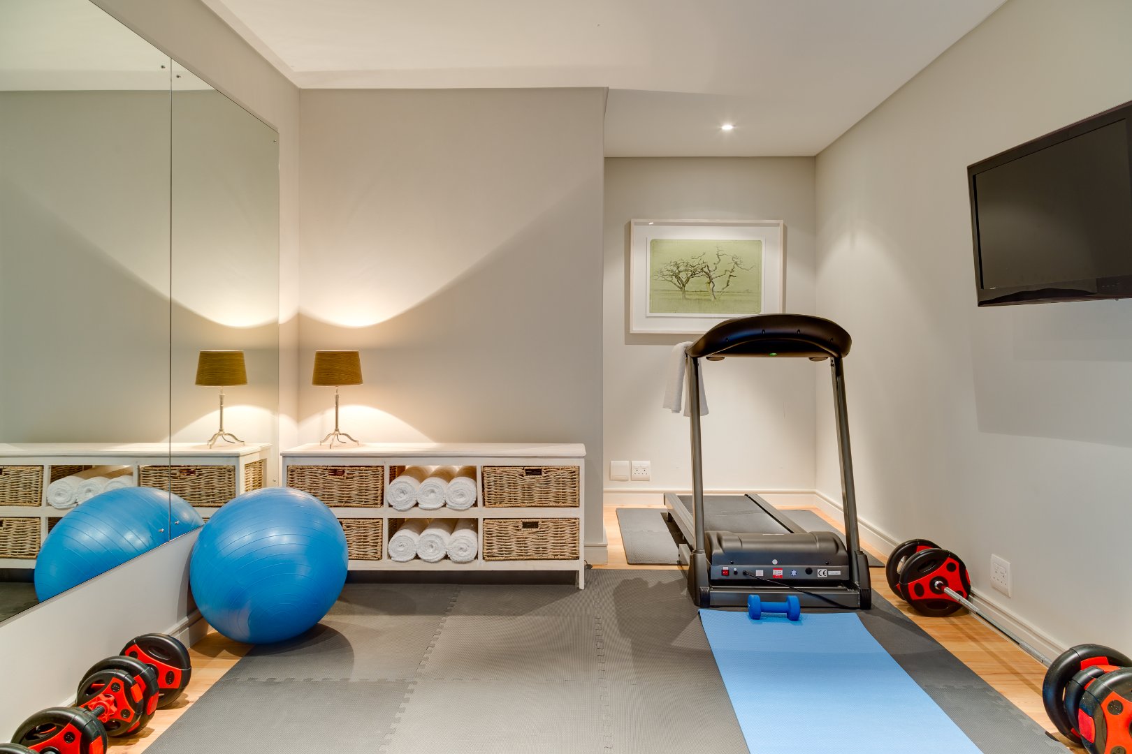 – Garages and entrance area, small gym with treadmill, weights and mats, tv and aircon / heater