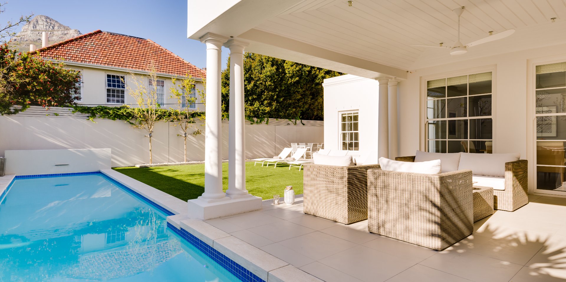 Grand, classic and chic. This pristine 5 bedroom en-suite European styled villa is a leisurely stroll away from the famous Camps Bay beach and world-class restaurants, bars and boutiques spotted along the promenade. From your private balcony, soak in epic views of the waves crashing on the shore and the Twelve Apostles mountain range. Seamless seaside living flows from this open plan 3 story residence to outdoor spaces that burst with natural beauty. Featuring a large lap pool, cinema room, a study that converts to a 6th bedroom and secure parking for 5 vehicles. This is an ultimate Camps Bay vacation home.