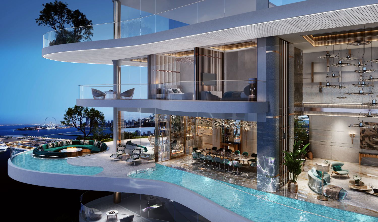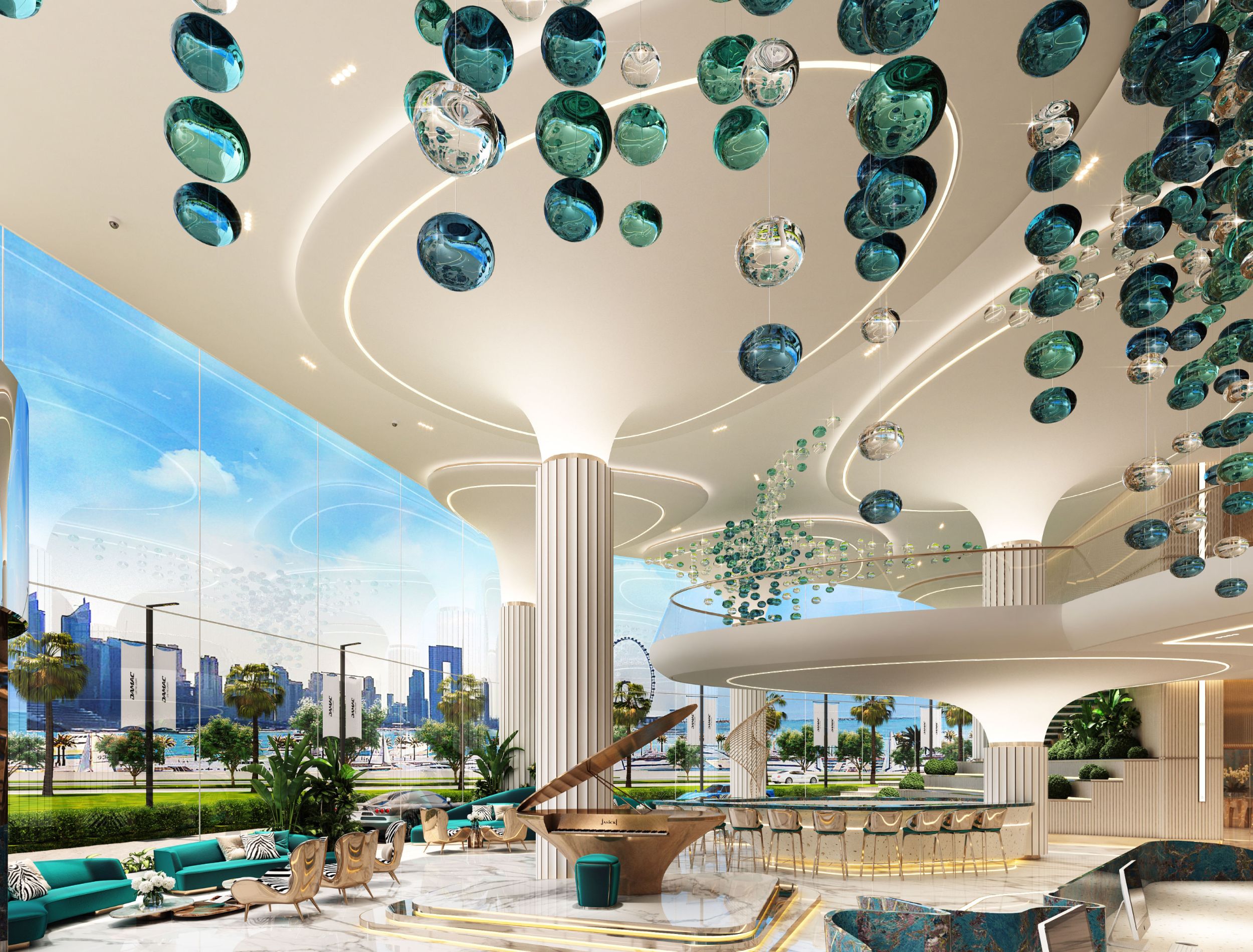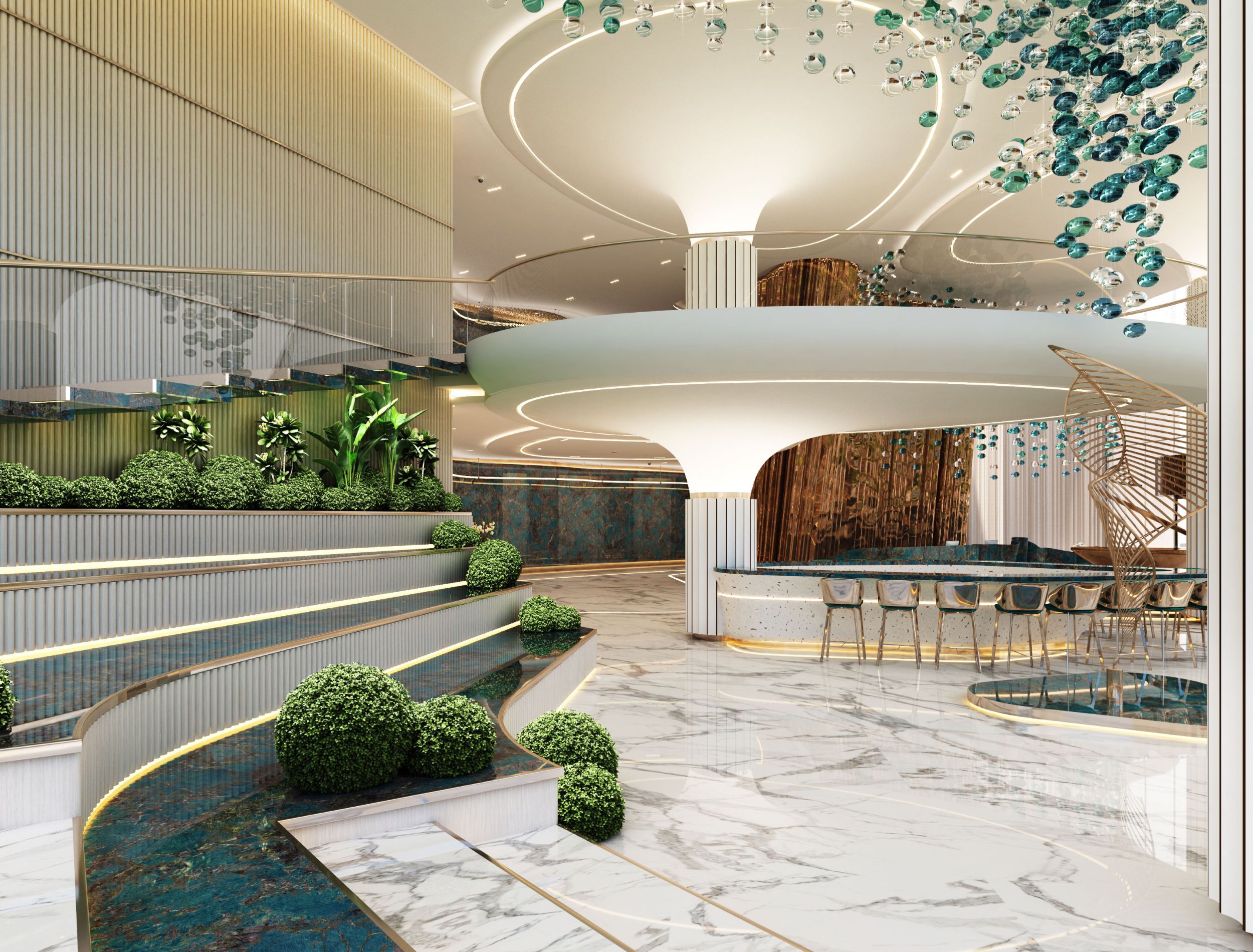 The roof top features an Edutainment hub, Dancing opera house, Water coworking space, Infinity pools, and a Garden walk-ways in the sky. The podium level consists of a Water maze, Fashion snorkeling pool, Hammock and chilling space.