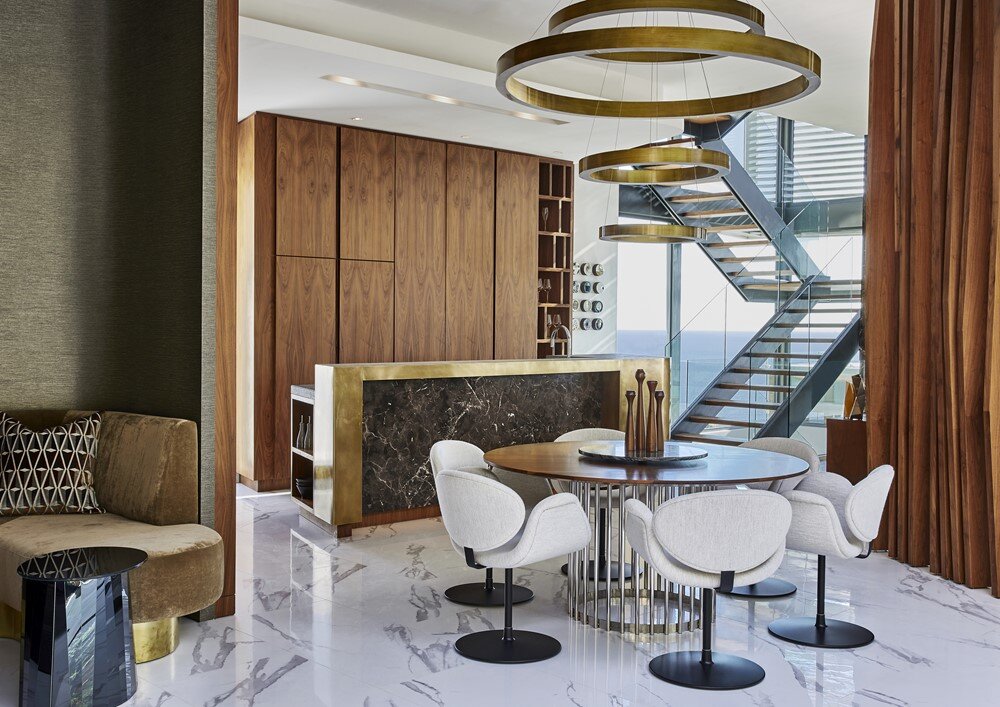 De Wet Art Villa is a striking home designed by the renowned local architecture firm SAOTA. Complementing this terraced house, the ARRCC-designed interiors champion a trove of gem-like materials and custom furniture that pull together the client’s brief for ultimate comfort within high-functioning entertainment zones. A mere 9 min drive from Lions Head with panoramic views of the Atlantic Ocean makes it a favorite amongst guests. Whether you want to host an intimate dinner, curl up in front of the fireplace or immerse yourself in the art collection on display in the villa – De Wet Art Villa offers ultimate comfort for your family.
