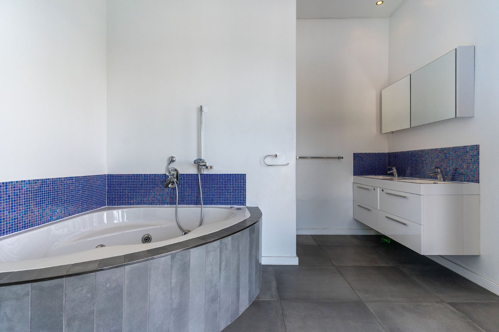 The home offers five generously sized bedrooms and five and a half bathrooms. Four of the bedrooms with their en-suite bathrooms are located on the upper level, while a fifth en-suite bedroom is positioned on the lower level, making it ideal for guests or extended family. A guest cloakroom is also conveniently located downstairs. The luxurious main bedroom suite serves as a private retreat, complete with a walk-in dressing room, a spacious bathroom with jacuzzi bath, and a sea-facing balcony offering beautiful ocean views.
