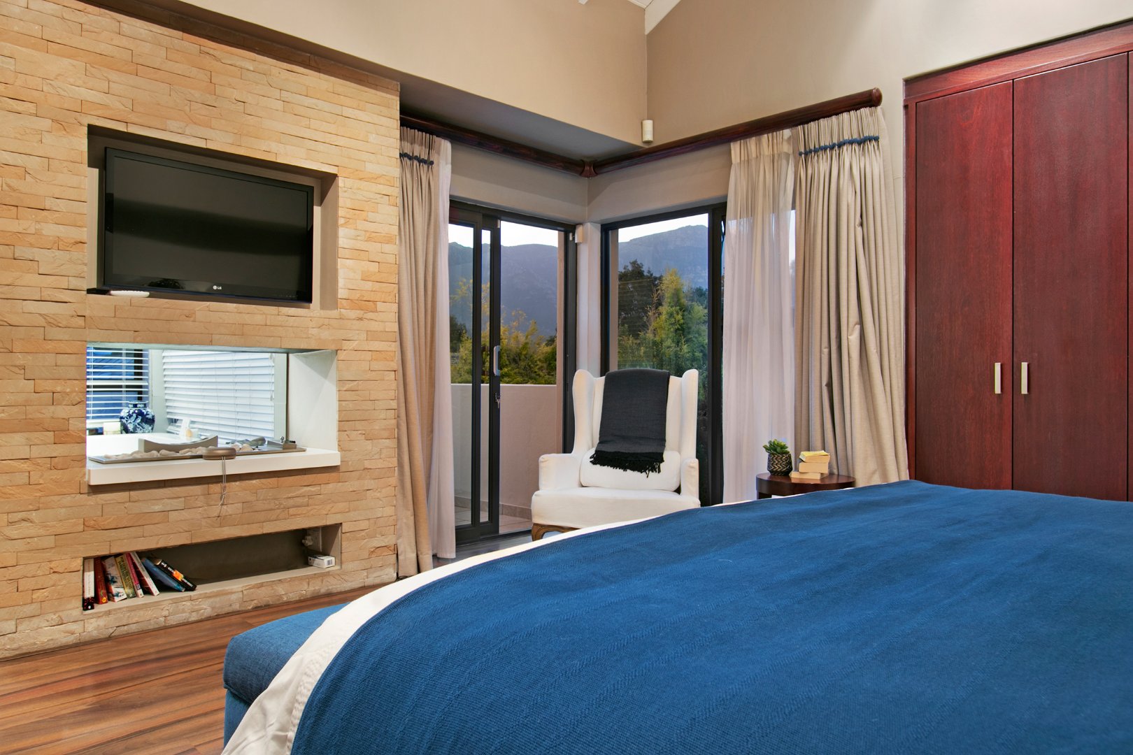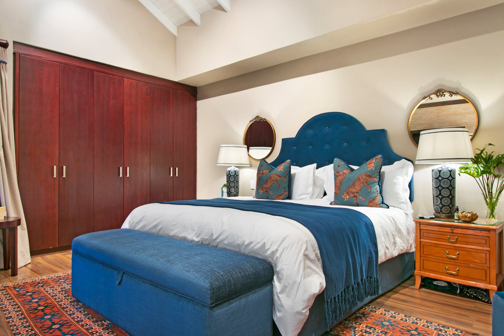 All bedrooms are spacious and well-appointed, offering garden or pool views, quality finishes, and comfortable en-suite or dedicated bathrooms. The main bedroom opens onto a private patio and features a fireplace, creating a serene retreat within the home.