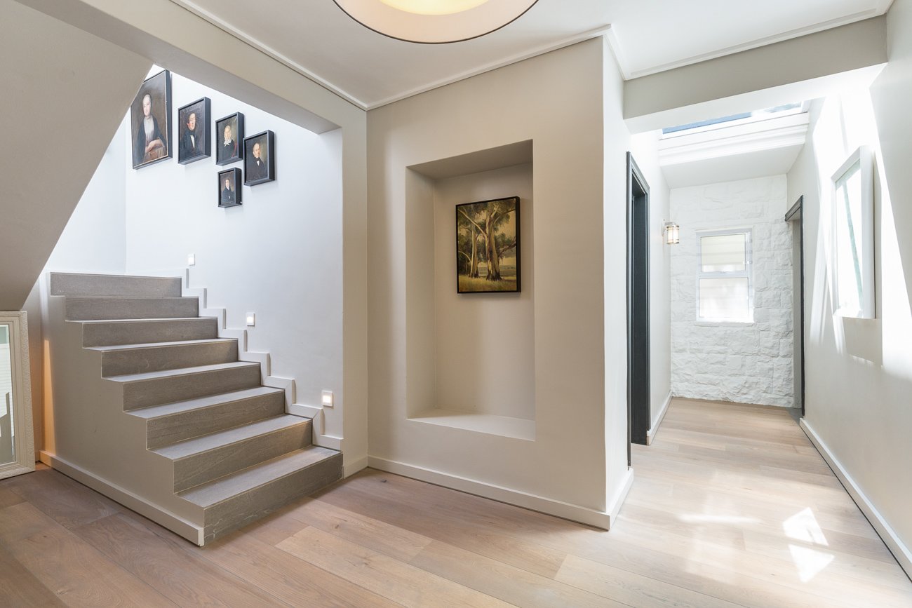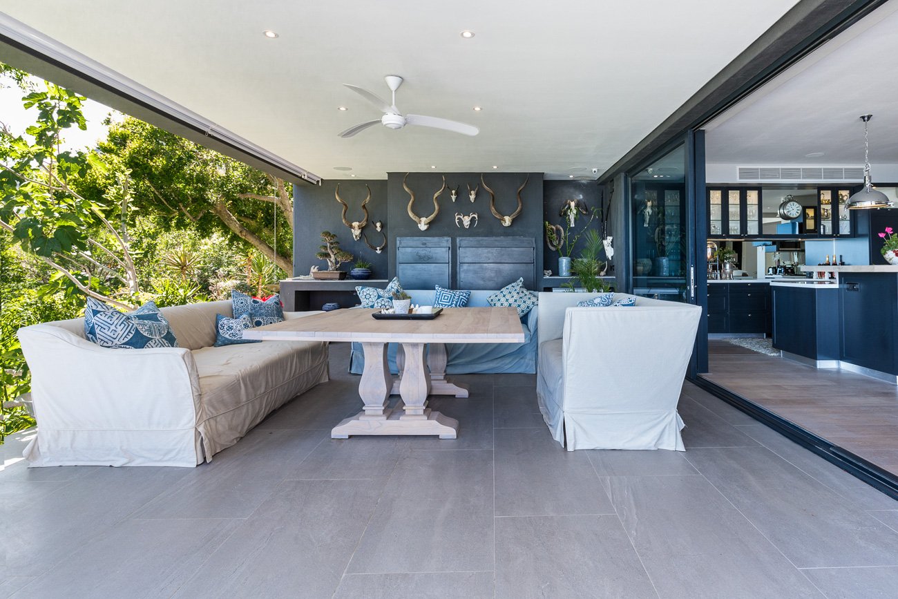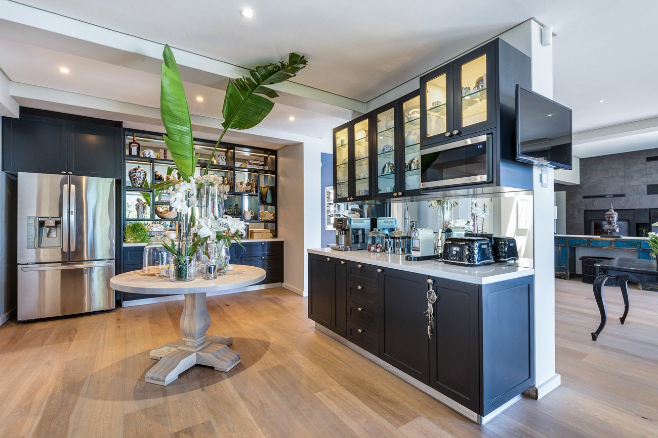 Entry level comprises a beautiful open plan kitchen with a separate scullery, dining, and lounge area which flows onto a gorgeous outdoor entertainment and braai area connecting to the terrace with a heated pool and large wrap-around garden.