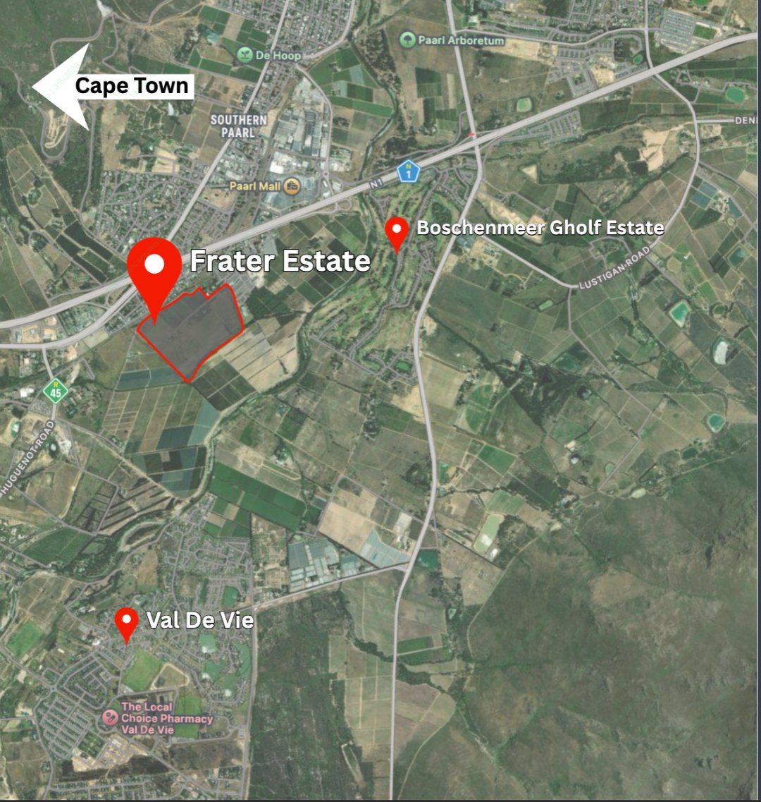 Let me introduce you to Frater Estate, an exceptional development opportunity in the heart of the Cape Winelands. This visionary residential development site offers the potential to create a landmark lifestyle estate within one of the Western Cape’s most desirable and rapidly growing property corridors.