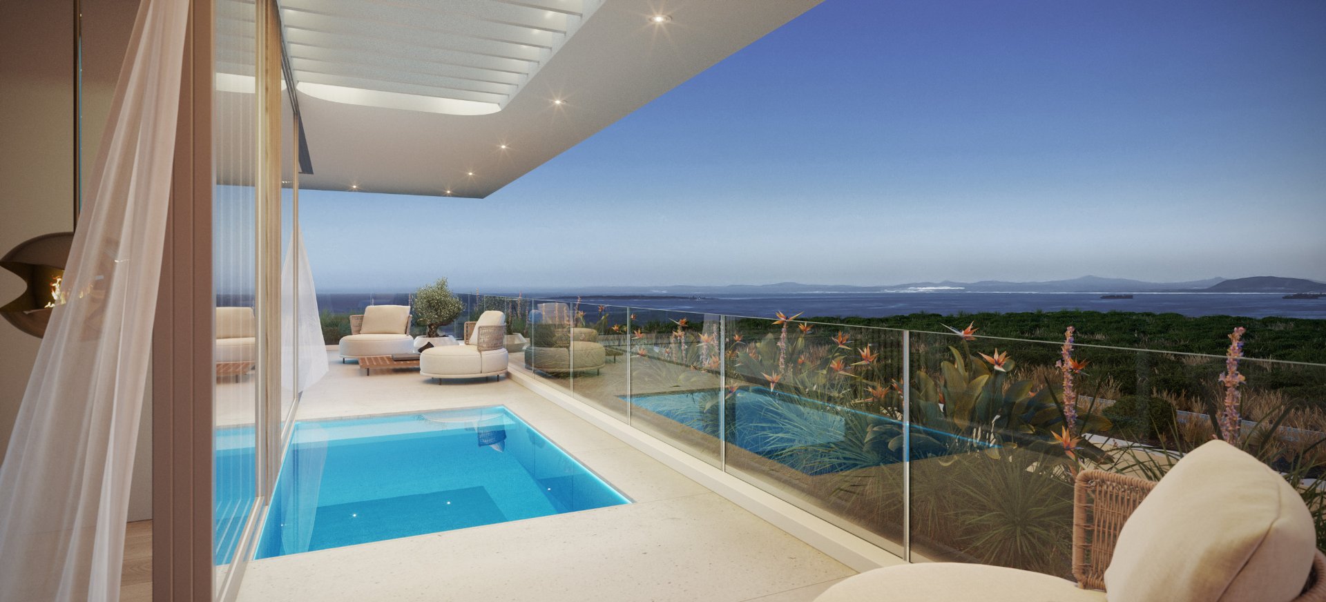 The design of the development was inspired by the harmony of nature, fusing the architecture with the primal surroundings of the mountain and the endless sea views.