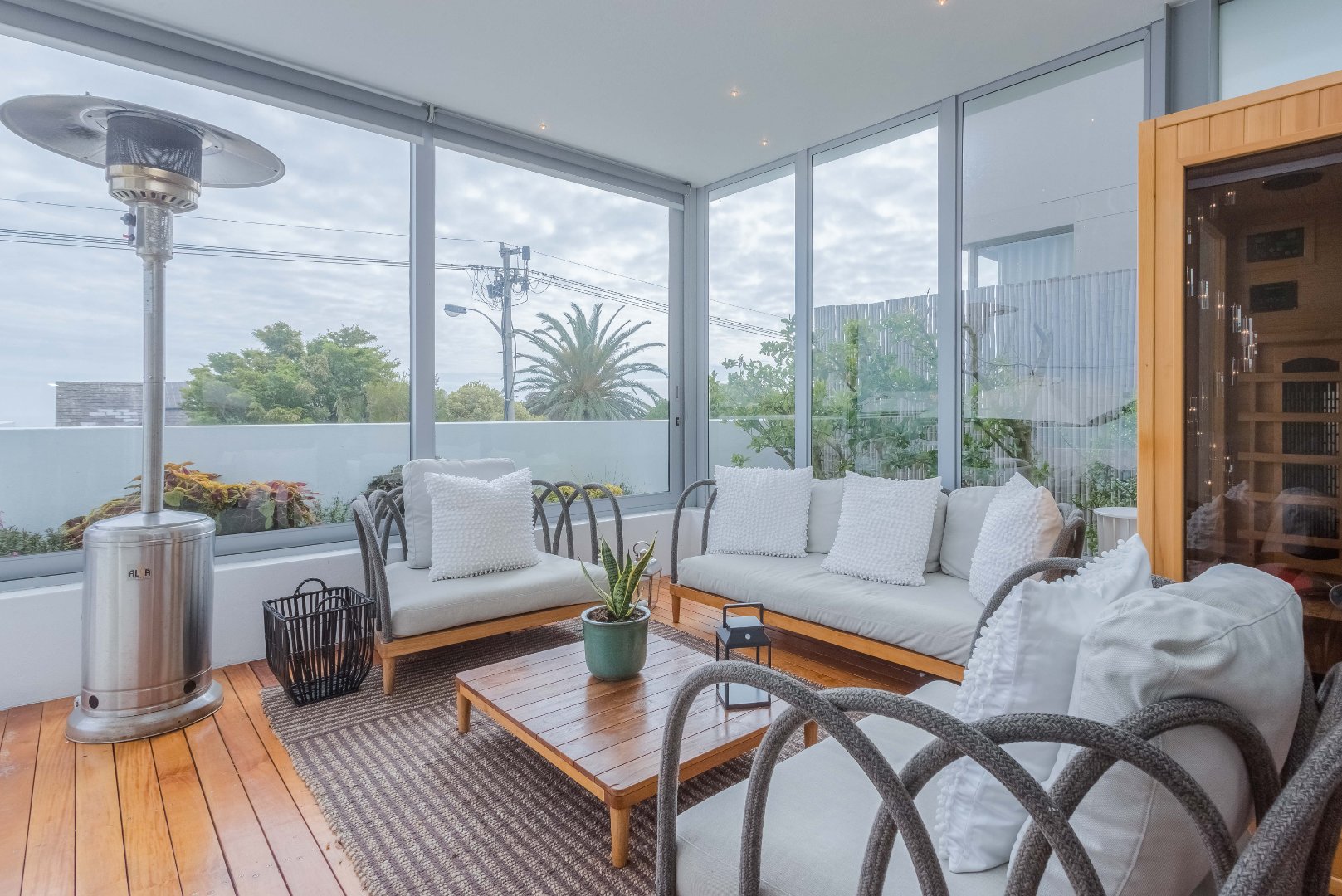Take in the spectacular views of the ocean from the comfort of the cozy Pajama lounge, which features a gas fireplace that creates a warm and inviting atmosphere. The lounge is perfect for snuggling up with your loved ones, reading a book or enjoying a glass of wine.