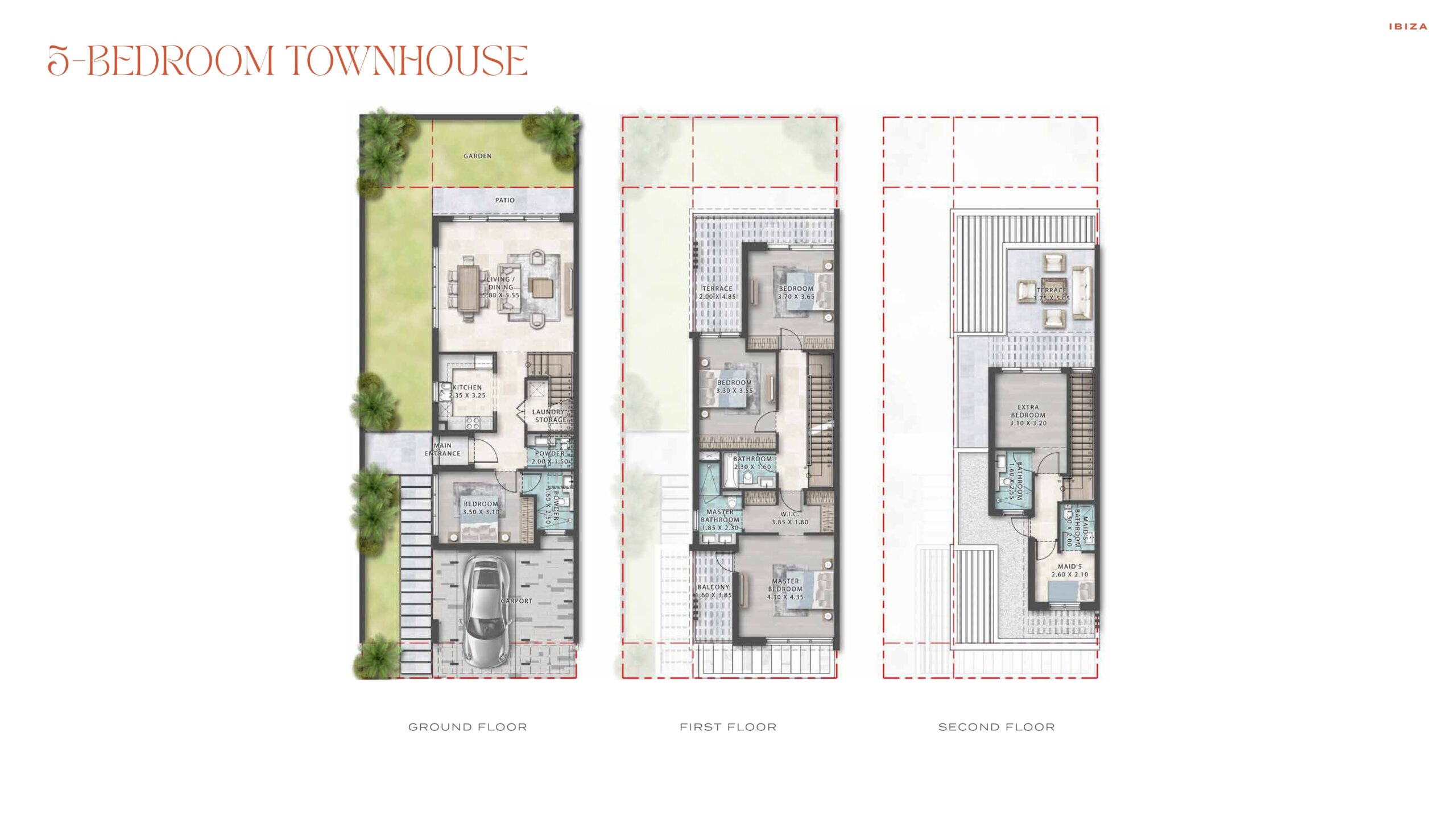 This five-bedroom townhouse with four bathrooms and a powder room has the perfect flow with an open-plan lounge, dining room, and kitchen that flow onto a patio with a garden The Master Bedroom has an en-suite bathroom, walk-in closet, and balcony. A back terrace can be accessed from two of the second-floor bedrooms with views of the garden as well as a top-floor terrace accessed from the staircase. Staff Quarters with a bedroom are located on the top-floor. A double carport and laundry room make this the perfect townhouse.