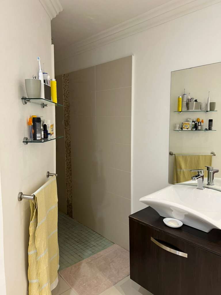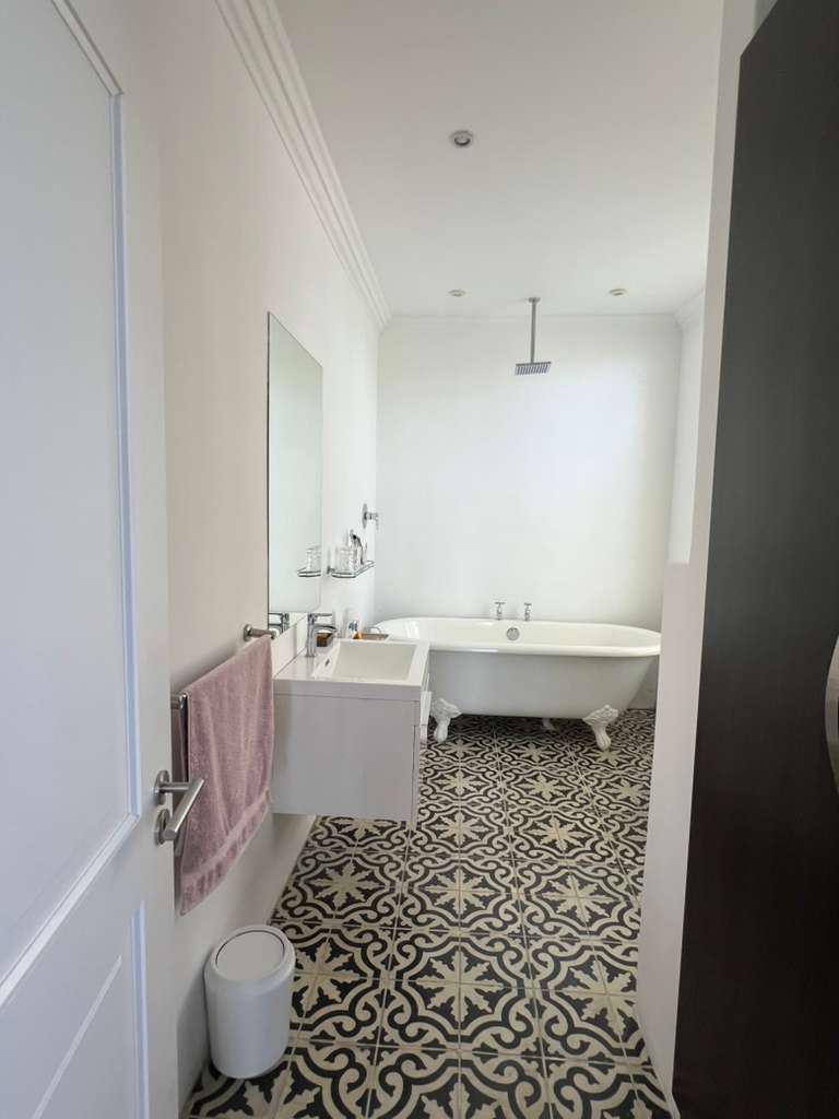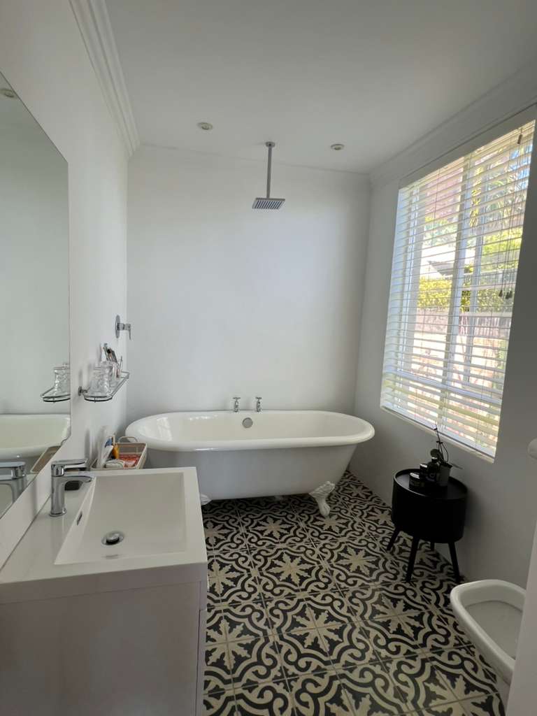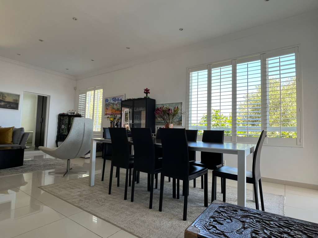 All three bedrooms are generously proportioned, with the main suite enjoying spectacular views and access to outdoor areas. The additional bedrooms are equally spacious and are complemented by stylish, well-finished bathrooms, including a beautiful freestanding bath and modern shower facilities. Air-conditioning throughout the home ensures comfort in all seasons.