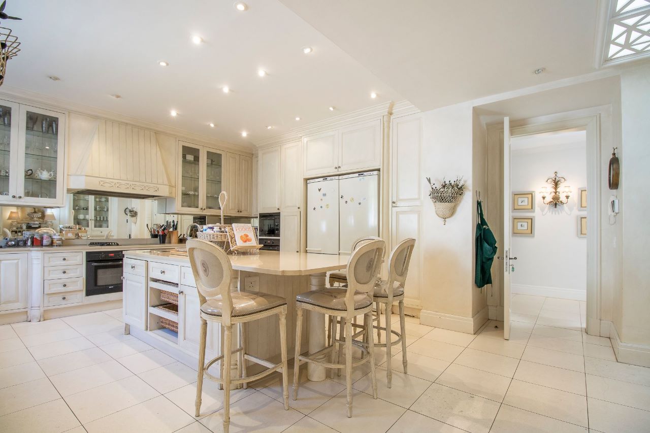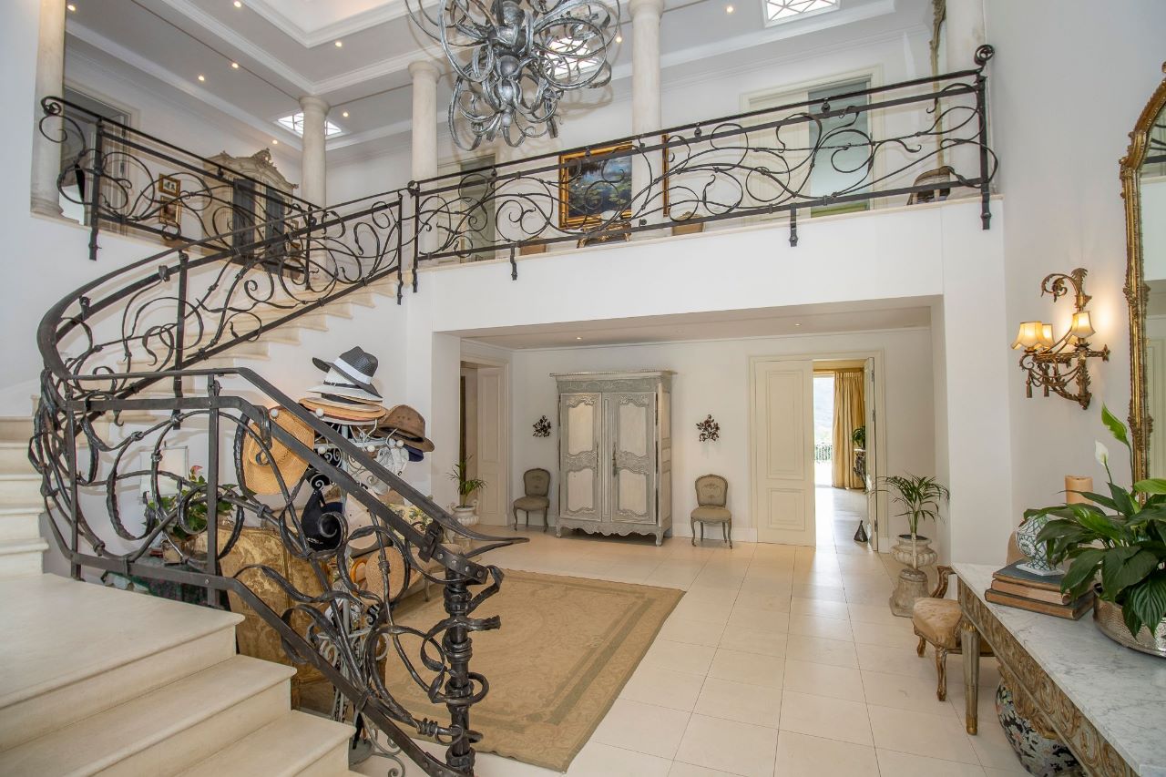 Nestled in one of Cape Town’s most esteemed neighbourhoods, this remarkable home offers a captivating blend of elegance and natural beauty. As you traverse the tranquil, tree-lined road, the property’s grandeur becomes apparent, marked by a stately entrance adorned with well-maintained gardens and the harmonious melody of birdsong. A 4-car garage, seamlessly integrated into the residence, awaits at the end of the driveway, providing convenient access to the heart of the home.