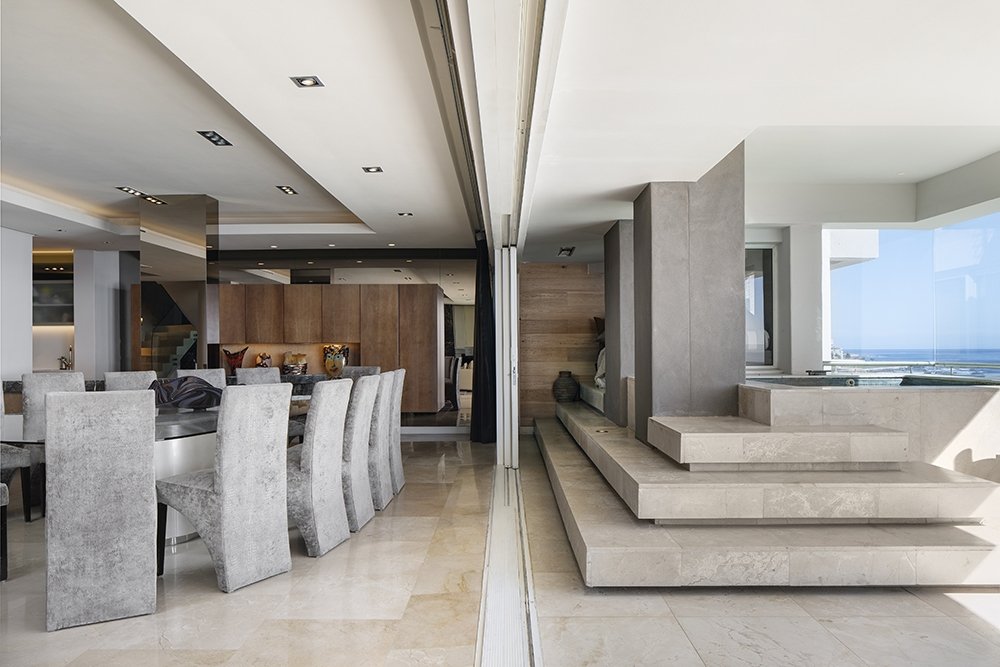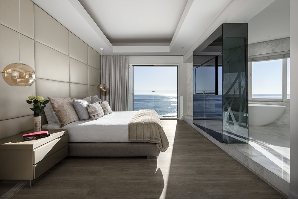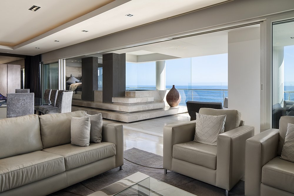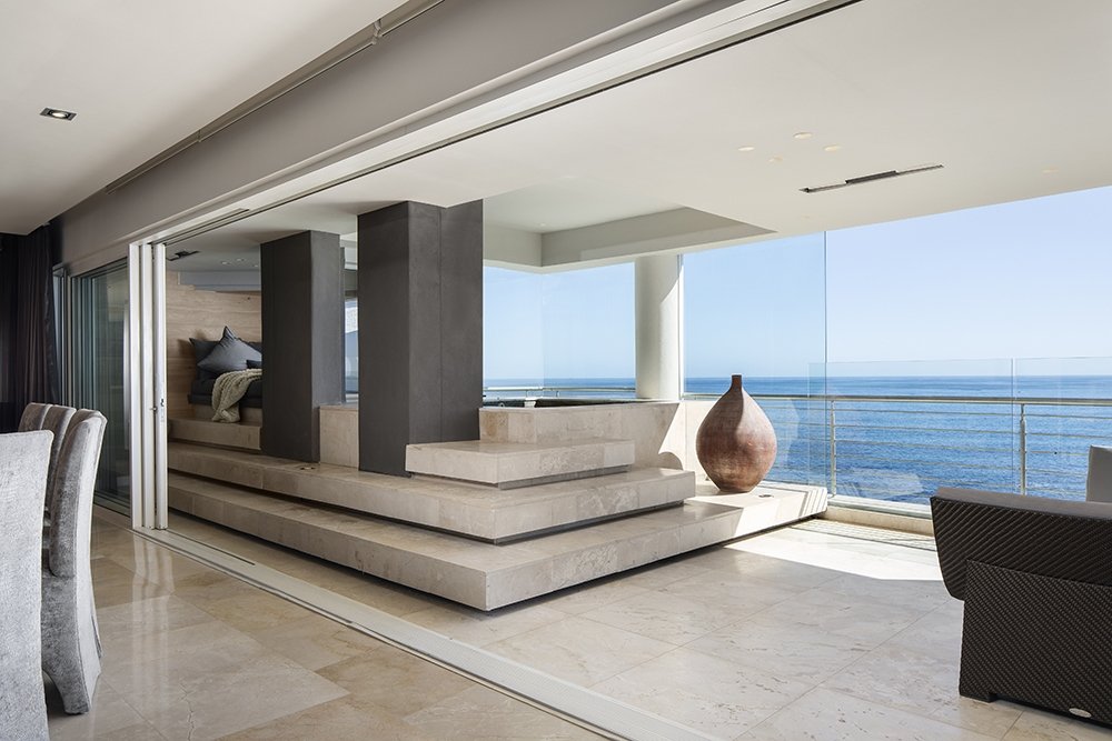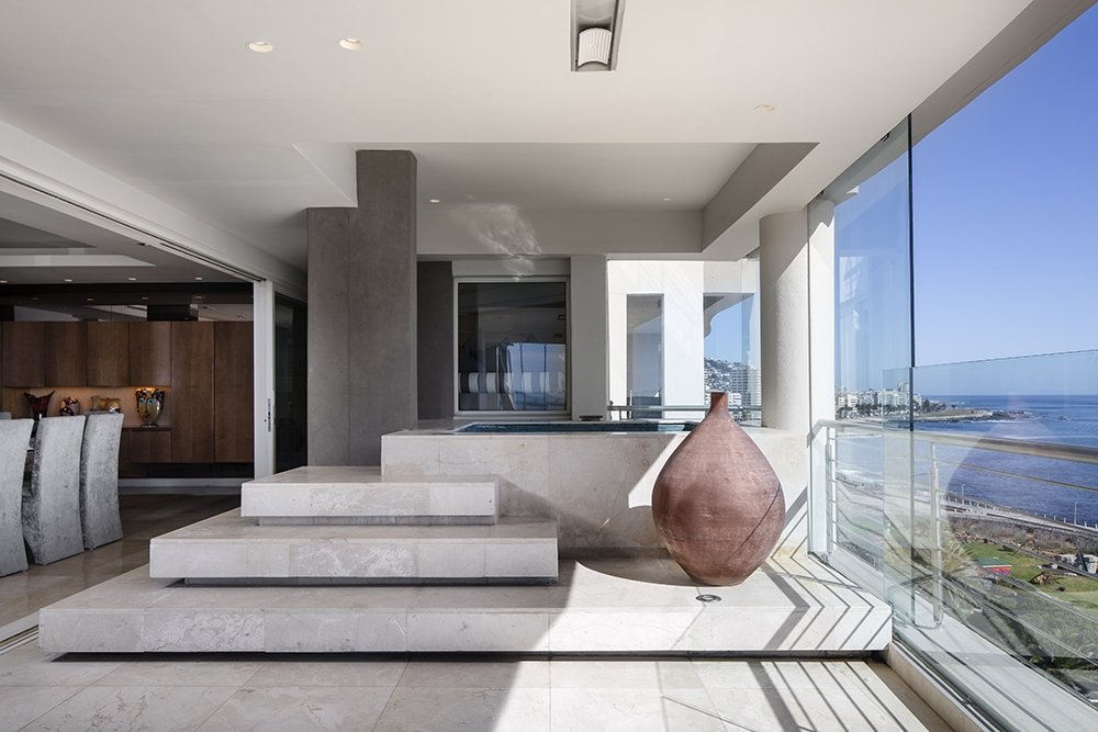 North facing penthouse apartment with private balconies that are carefully designed to optimize views of the ocean, mountain and iconic Robben Island.