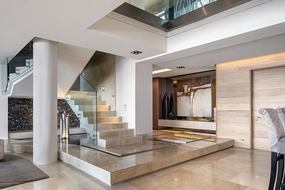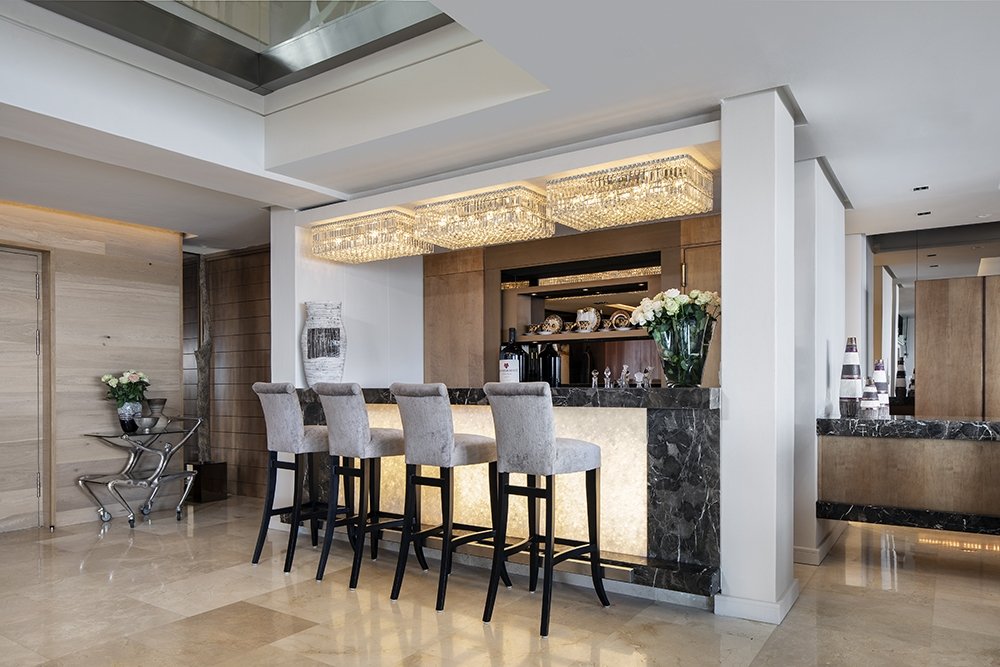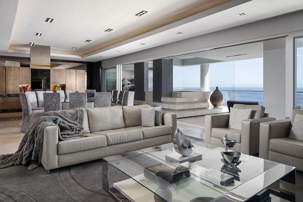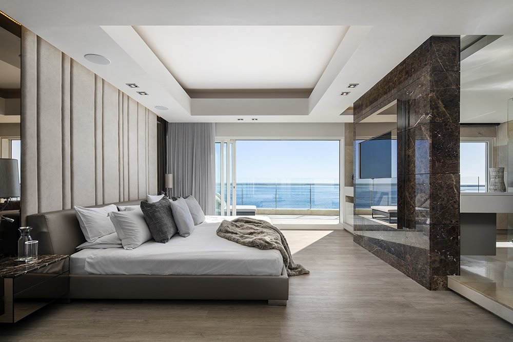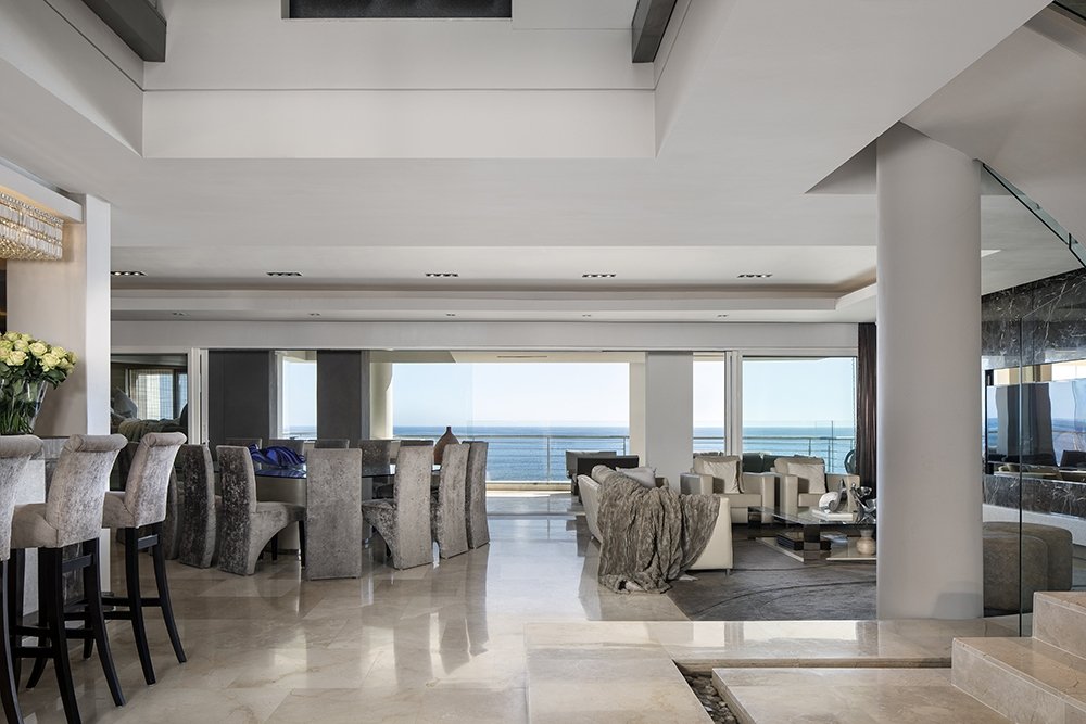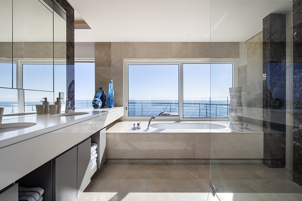 North facing penthouse apartment with private balconies that are carefully designed to optimize views of the ocean, mountain and iconic Robben Island.