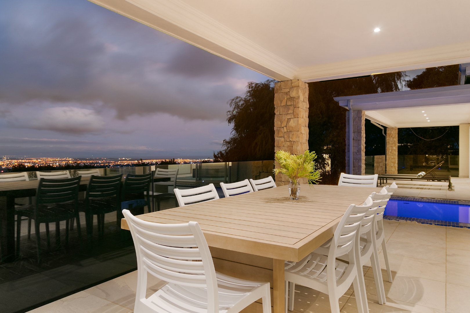 Nestled on the slopes of Table Mountain National Park in the prestigious, leafy suburb of Constantia, Lyons Den offers a peaceful and tranquil escape in one of the Cape’s oldest and most celebrated wine regions. With direct access to the scenic hiking trails of Constantia Nek and close proximity to world-class restaurants, wine estates, and modern shopping centres, this elegant villa combines natural beauty with ultimate convenience.