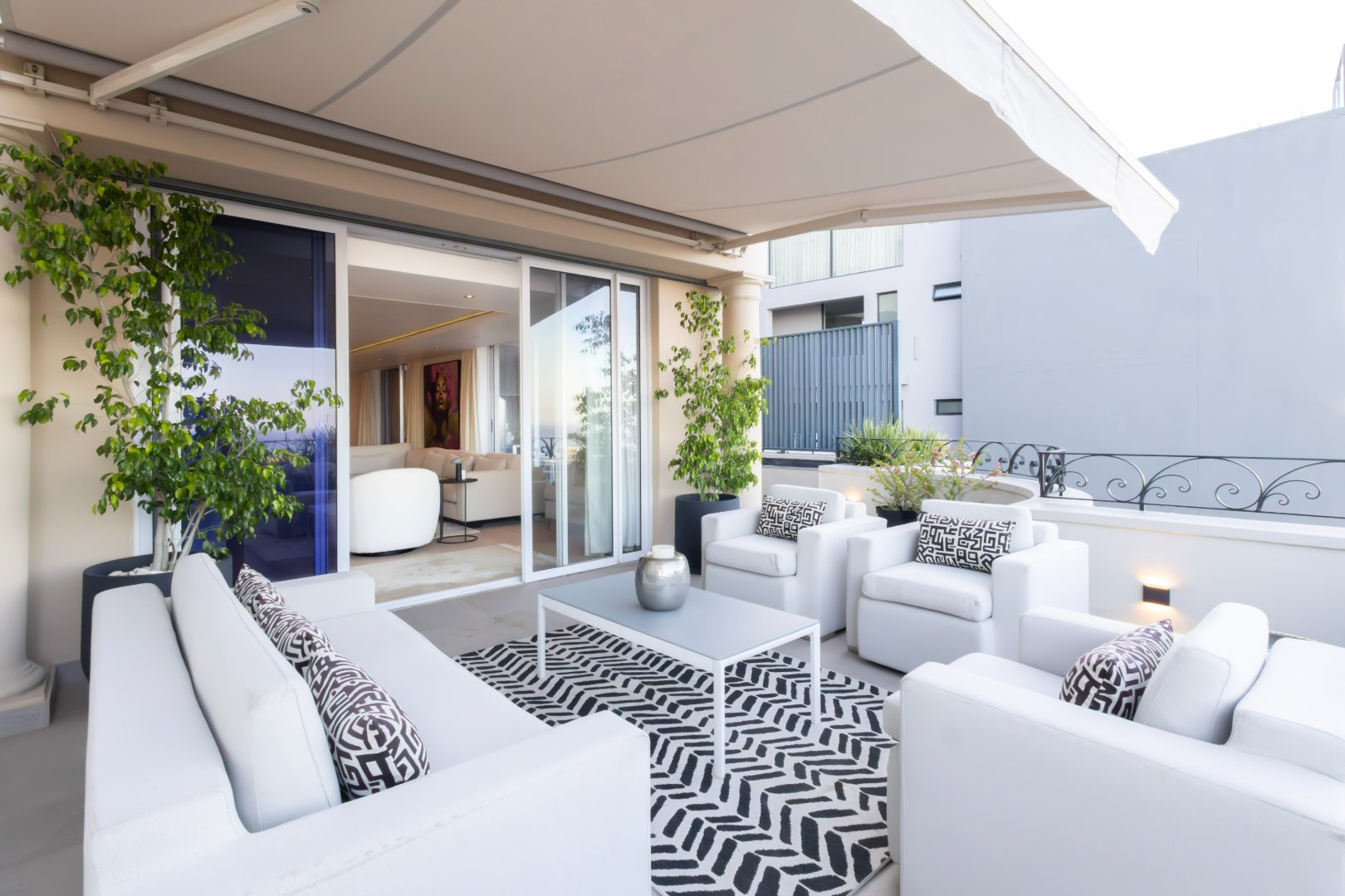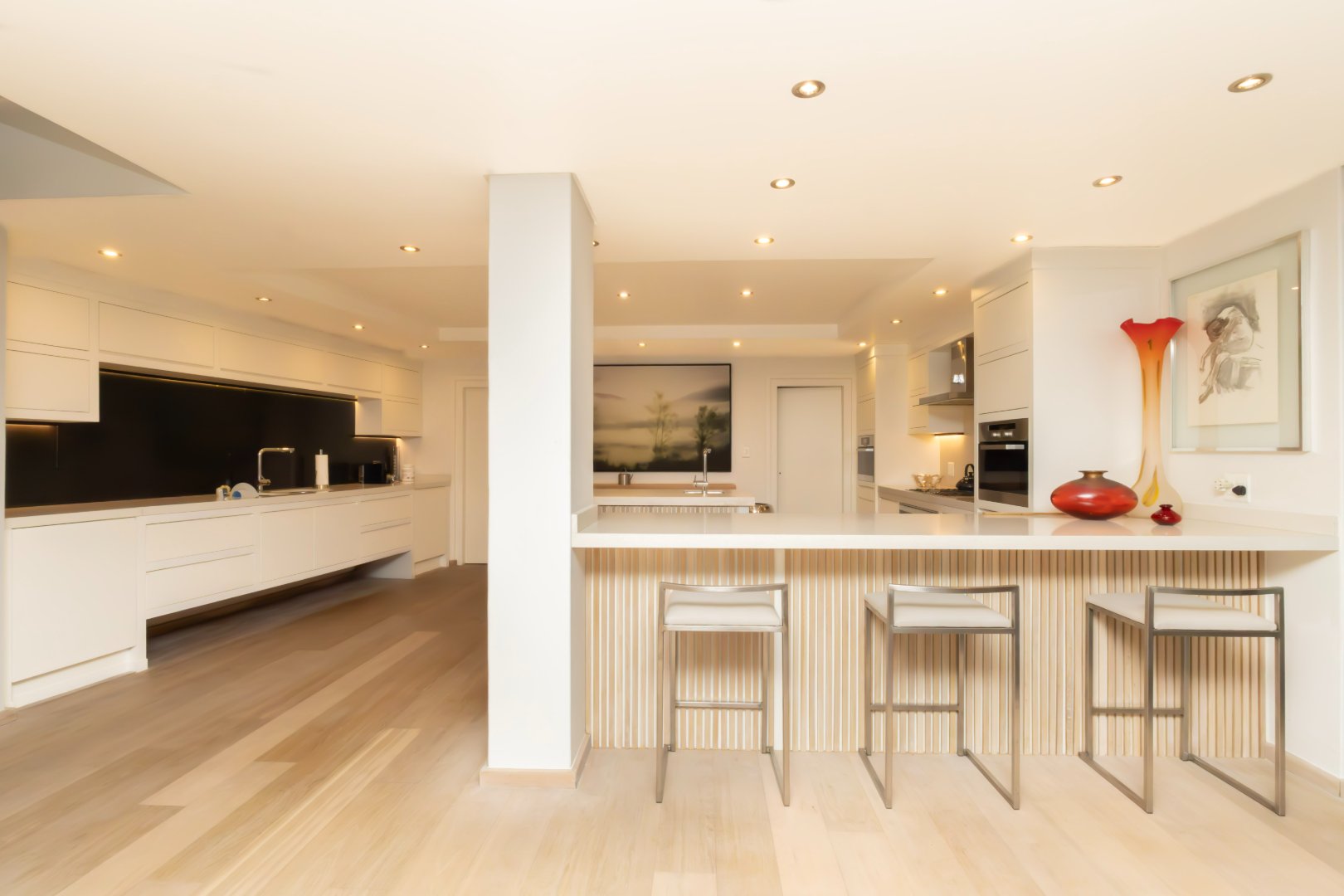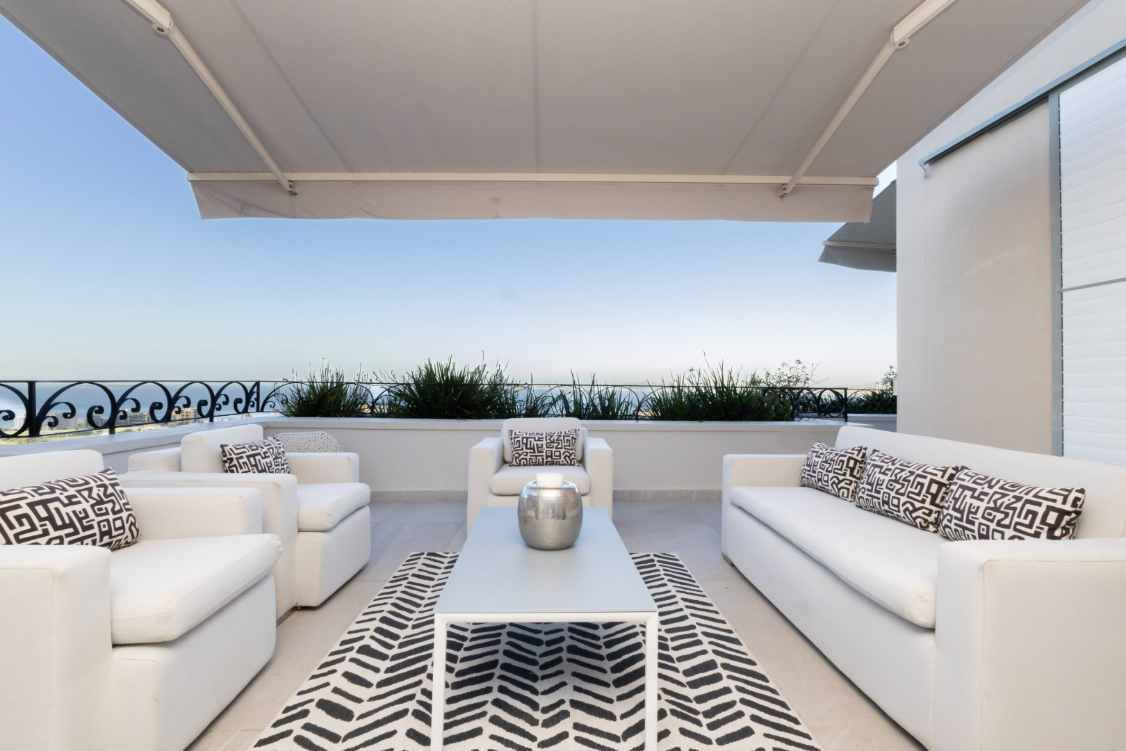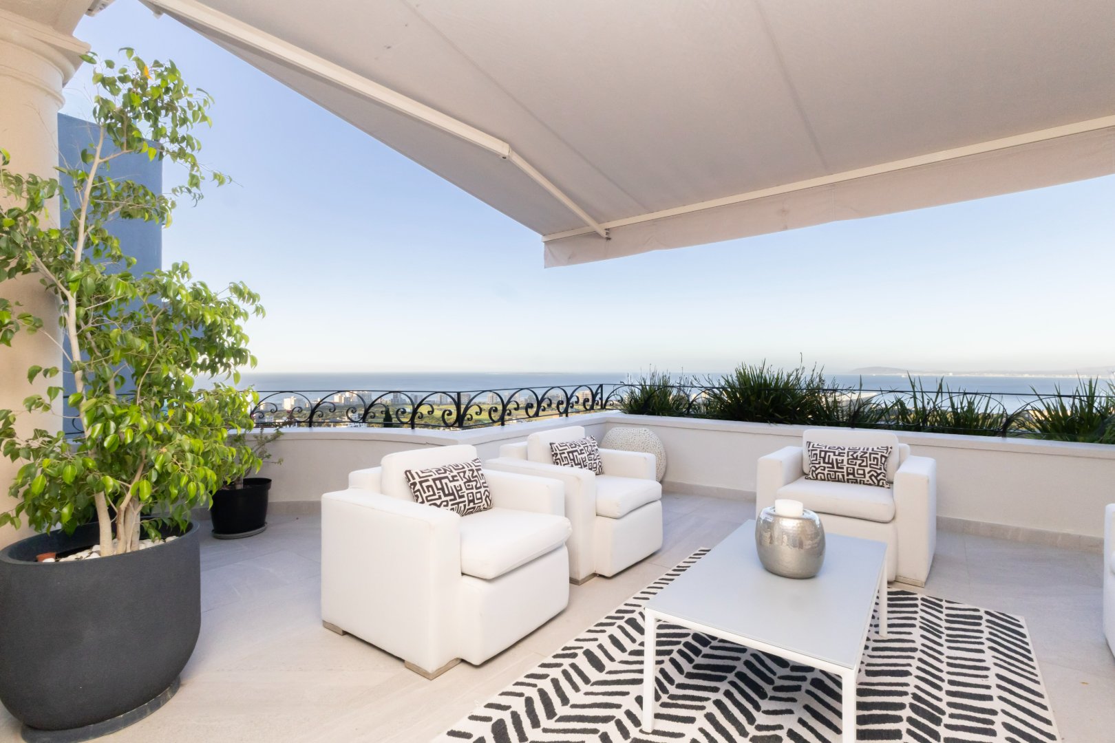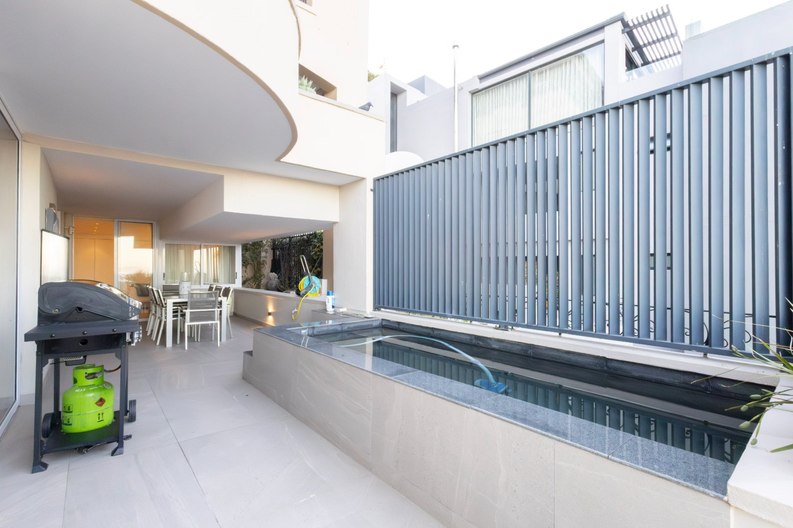 The apartment opens onto an expansive wrap-around terrace, creating a seamless indoor outdoor lifestyle. Here, a sparkling private pool takes center stage, providing the perfect retreat for sun soaked summer days, relaxed evenings, and entertaining against a backdrop of spectacular scenery.